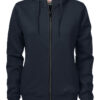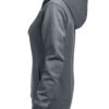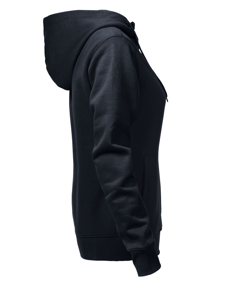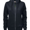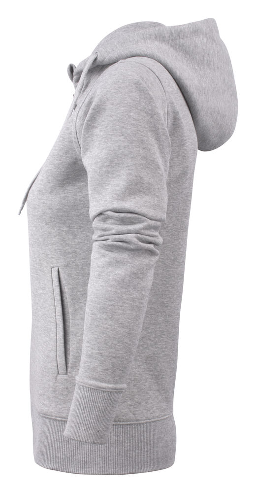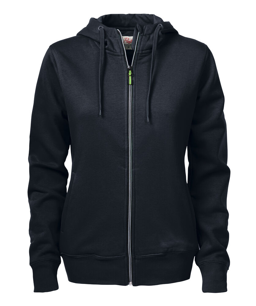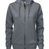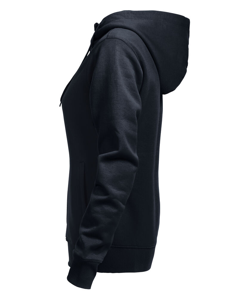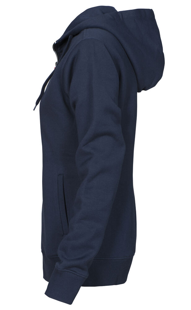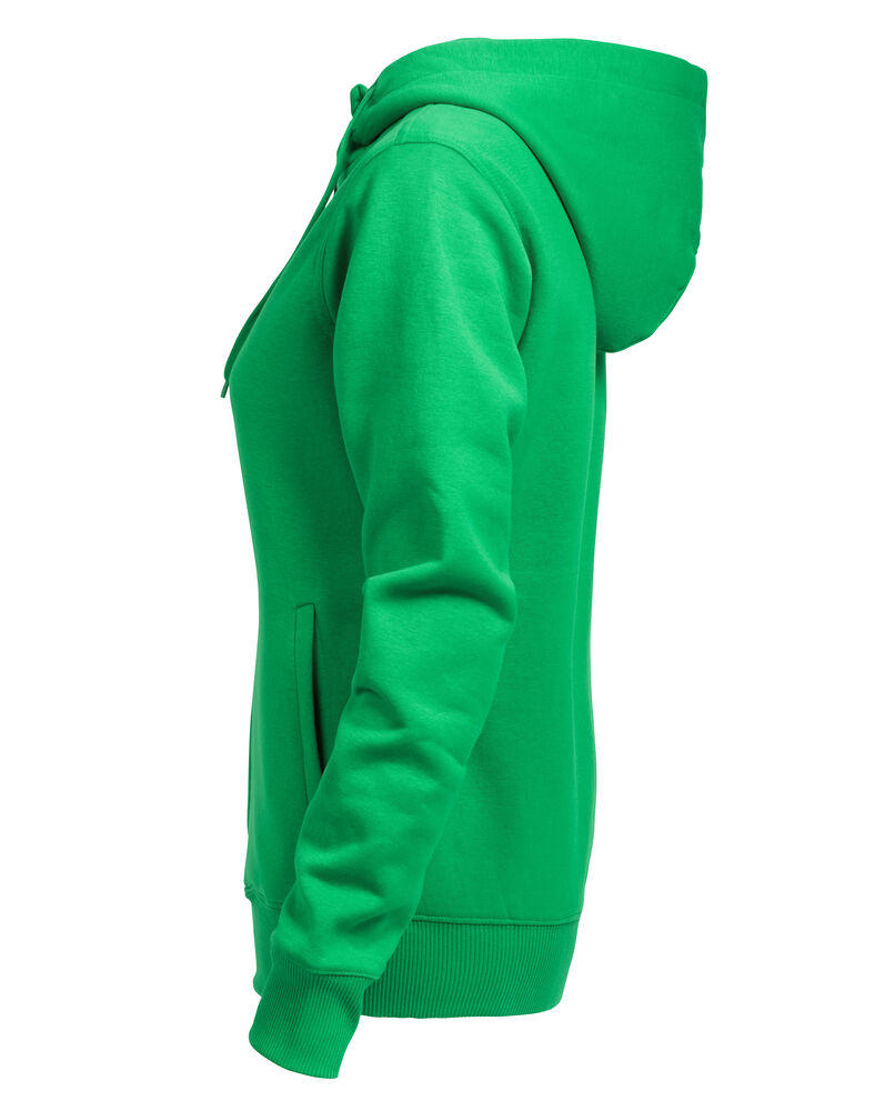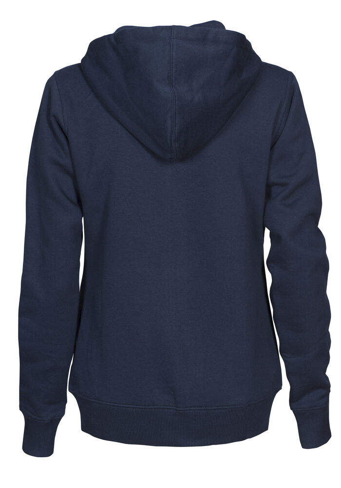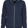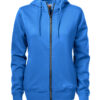 Hettejakke til dame med kontrastfarget glidelås i front. Overhead har stikklommer, hette fôret med singel jersey, samt snor i hetten.