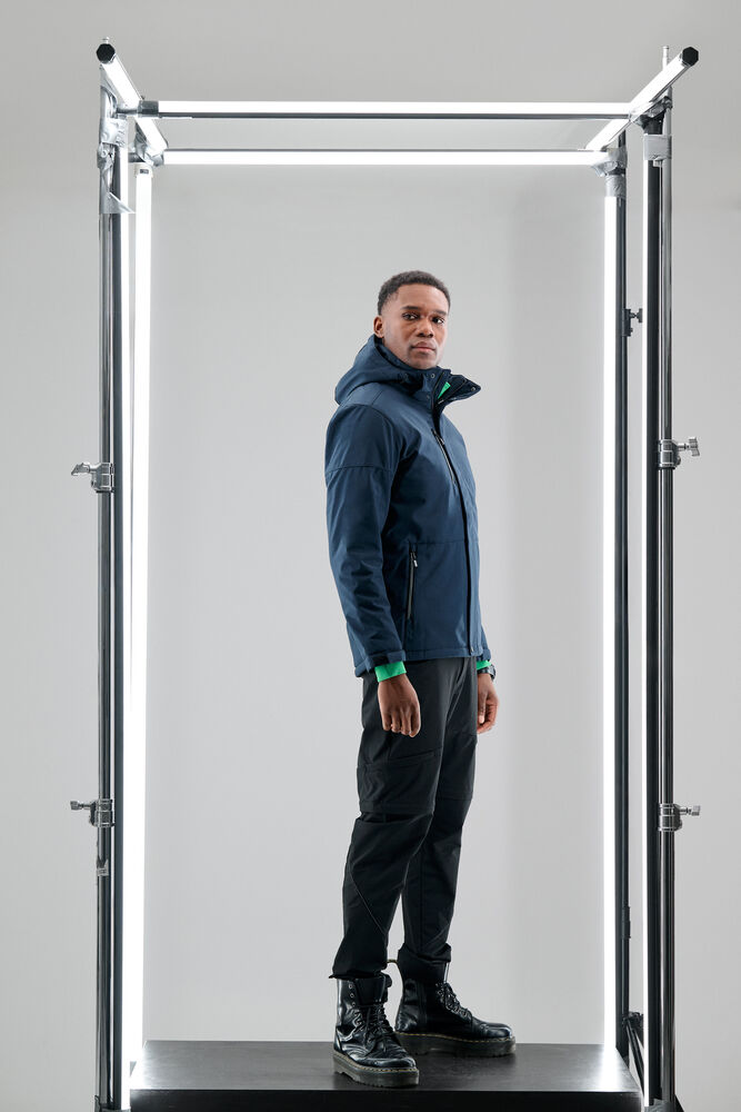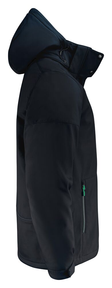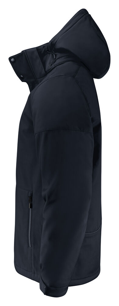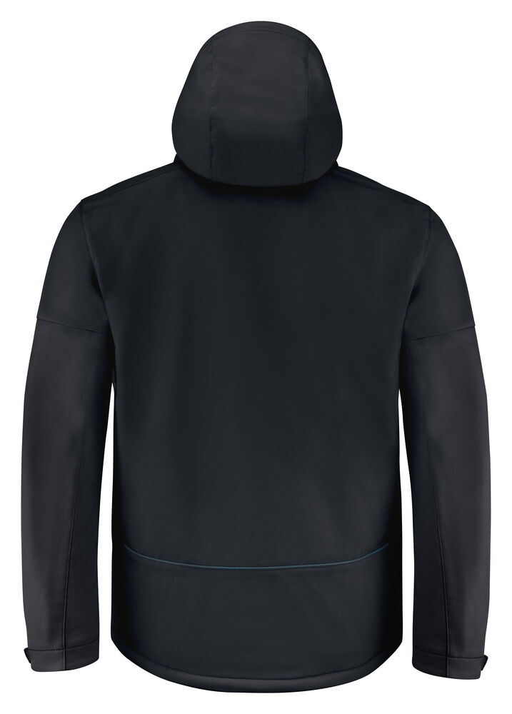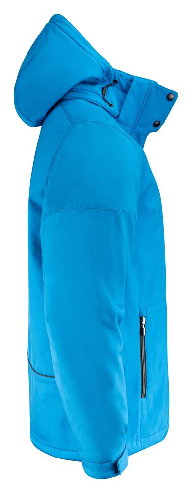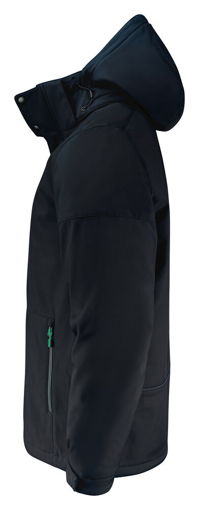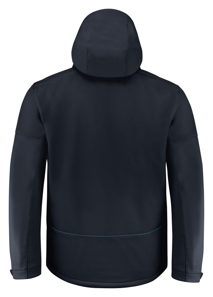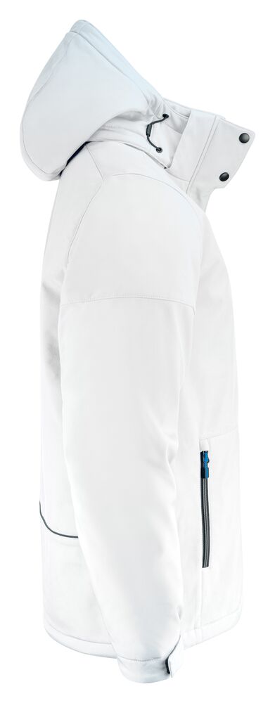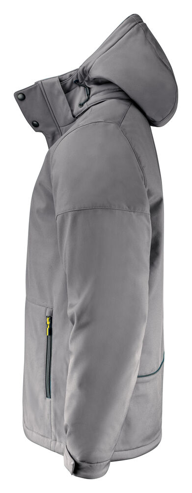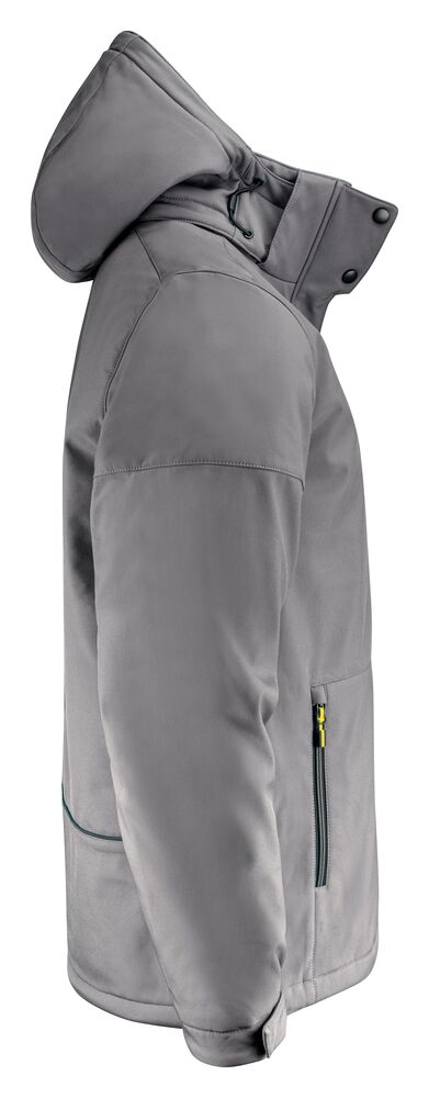 Vattert softshelljakke med avtagbar hette. Glidelåsbeskyttelse med trykknapper i front. Snøring ved hetten og nederkant (midje) og borrelåsjustering i ermavslutningene. To innerlommer med glidelås. Reflekterende passpoal nederst på ryggen. Halsetikett som enkelt kan rives av, og separat størrelsesetikett. Vaskechiplomme på indre venstre sidesøm. Glidelås i kontrastfarge. Zip pullers i flere farger selges separat. Øko-Tex 100 sertifisert. Pakket i en komposterbar pose.