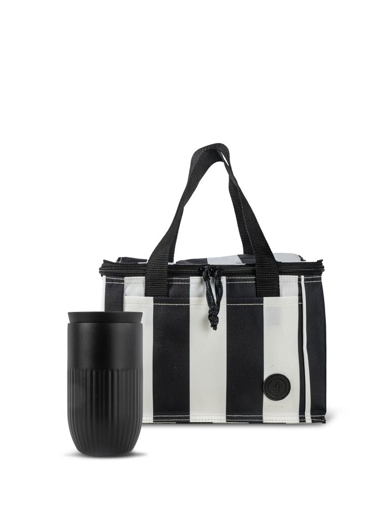 Et smart sett for deg som er på farten! Inneholder vårt optimale Tova-reisekrus i dobbeltvegget vakuumisolert rustfritt stål, sammen med den praktiske og kompakte City-kjølevesken med smakfulle striper. Perfekt for matpakken, med en liten frontlomme og ytterstoff laget av resirkulerte PET-flasker. Settet inneholder Tova bilkrus, svart (5018537) og City striped kjølebag small rPET, svart/hvit (5018592).