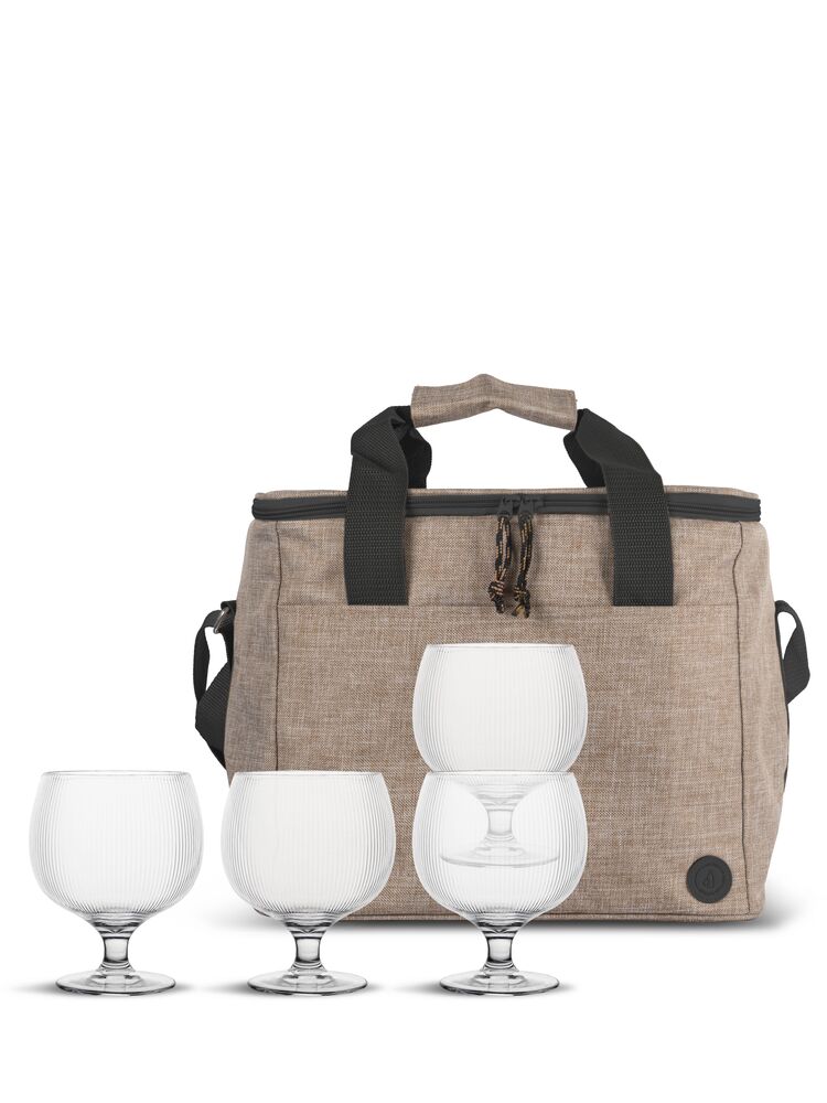 Enten du planlegger en piknik i parken, en dag på sjøen eller ved bassenget, er dette settet det perfekte valget. Det inkluderer vår romslige og stilige rPET City-kjølebag, med både bærehåndtak og justerbar skulderreim. Rommer 20 liter. Sammen med en 4-pakning av våre stabelbare Billi vinglass i resirkulert plast (rPET) får du en praktisk og holdbar løsning for enhver anledning. Perfekt som gave til personen som allerede har alt, og som ønsker å nyte stunder utendørs med stil. Settet inneholder en City kjølebag large, rPET beige (5018589) og Billi vinglass, 4-pakning (5018491).