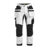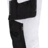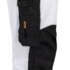 Malerbukse med stretchpaneler i form av skrittkile i stretch Cordura® som gir ekstra bevegelsesfrihet. Knebeskyttelseslommer med sider i stretch Cordura®. Core er ringspunnet bomull/polyester, en kvalitet med styrke fra polyester og komfort fra bomull. Malerbuksen har romslige hengelommer. Den indre lommen har vannavstøtende FA™-polyamidfôr på innsiden. Ekstra beltehemper på de største størrelsene. Hammerhank. Kniv- og tommestokklomme med praktiske rom for alle tenkelige maleverktøy. Skrå benlomme med glidelås, telefonrom, rom for ID-kort og ekstrarom. Snor nede på benet. Sertifisert ifølge EN 14404:2004+A1:2010 type 2, nivå 1 sammen med Jobmans knebeskytter 9943, 9944 og 9945.