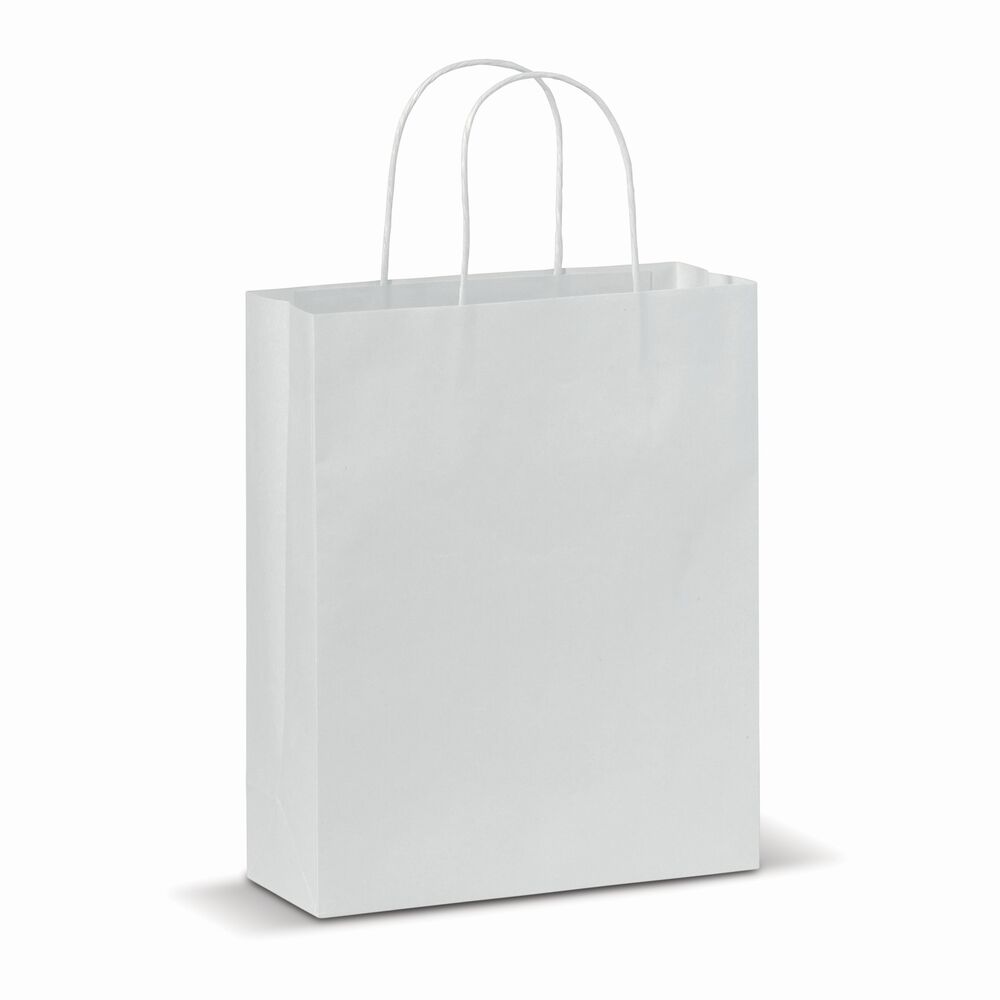 Hvite og brune papirposer ligger lagerført (uten logo) i Norge
