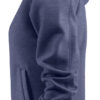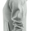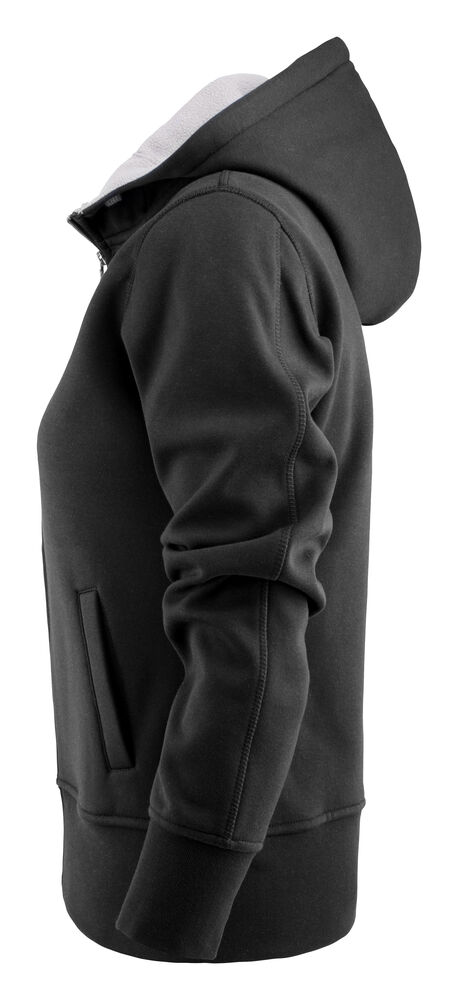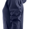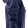 Hettejakke i double face materiale. Fleece på innsiden, bomull på utsiden. Metallglidelås i front og i lommen på brystet. Ribb i nederkant og i ermavslutning.