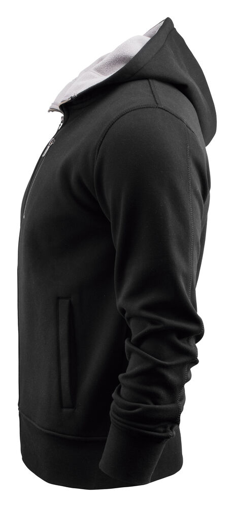 Hettejakke i double face materiale. Fleece på innsiden, bomull på utsiden. Metallglidelås i front og i lommen på brystet. Ribb i nederkant og i ermavslutning.