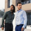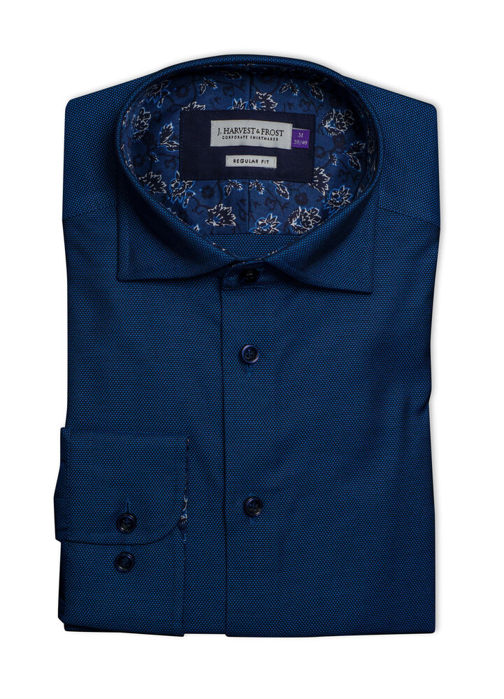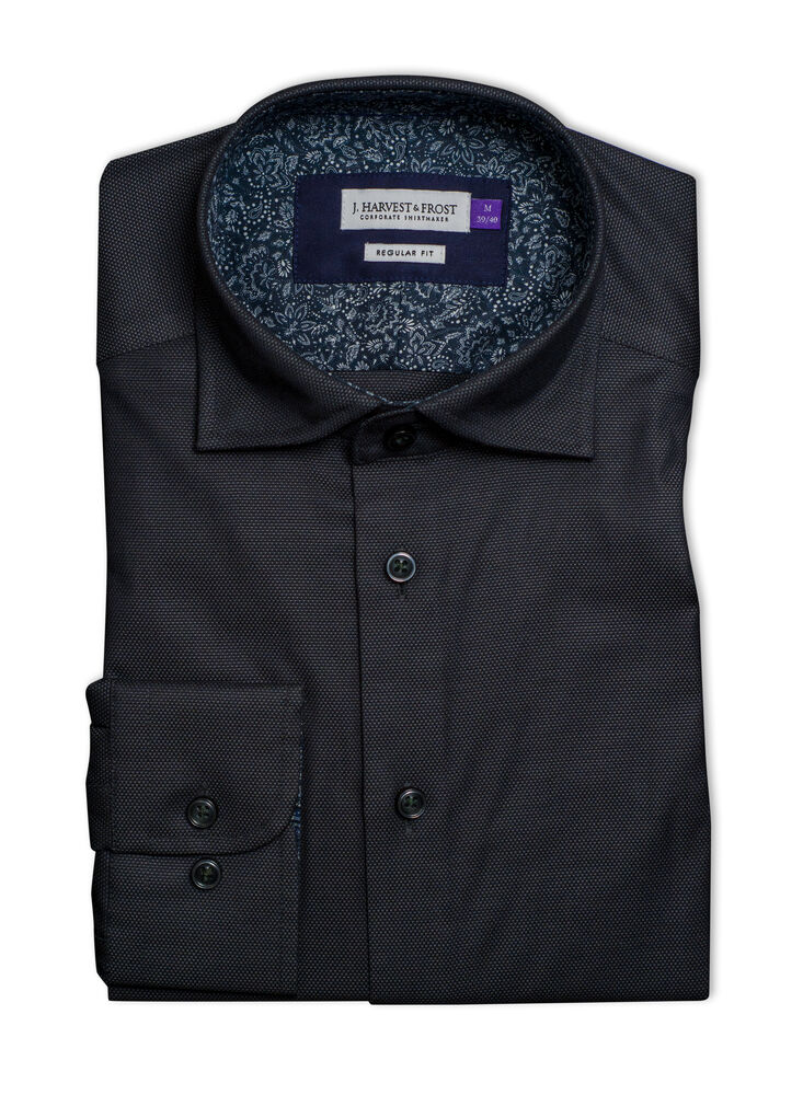 • Modern cut-away collar with hidden button down