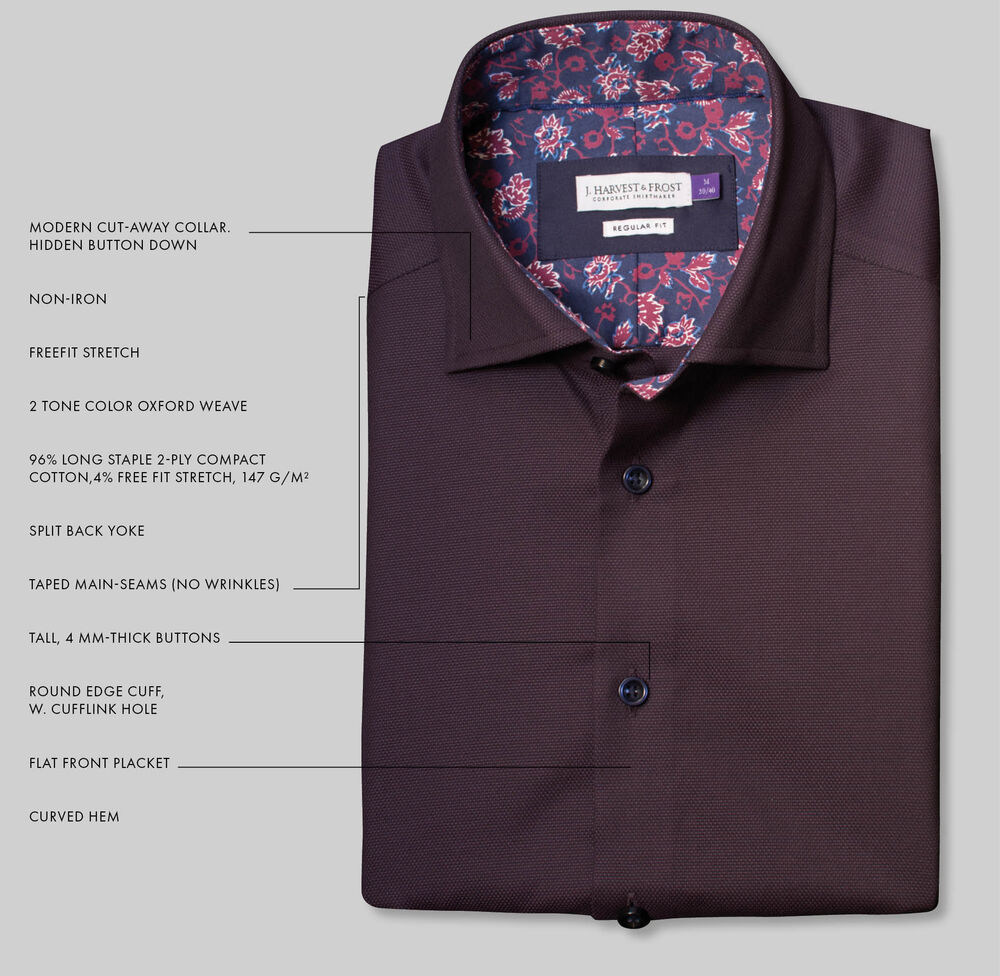 To-tonet sesongfarget og sofistikert oxford-stoff med utrolige 20% stretch i vevveien! Purple Bow 142 er enestående myk og behagelig, men likevel strykefri. Denne skjorten er kanskje vår beste "smart-casual" skjorte til nå – og vi antar at den raskt vil bli uunnværlig i garderobeskapet.