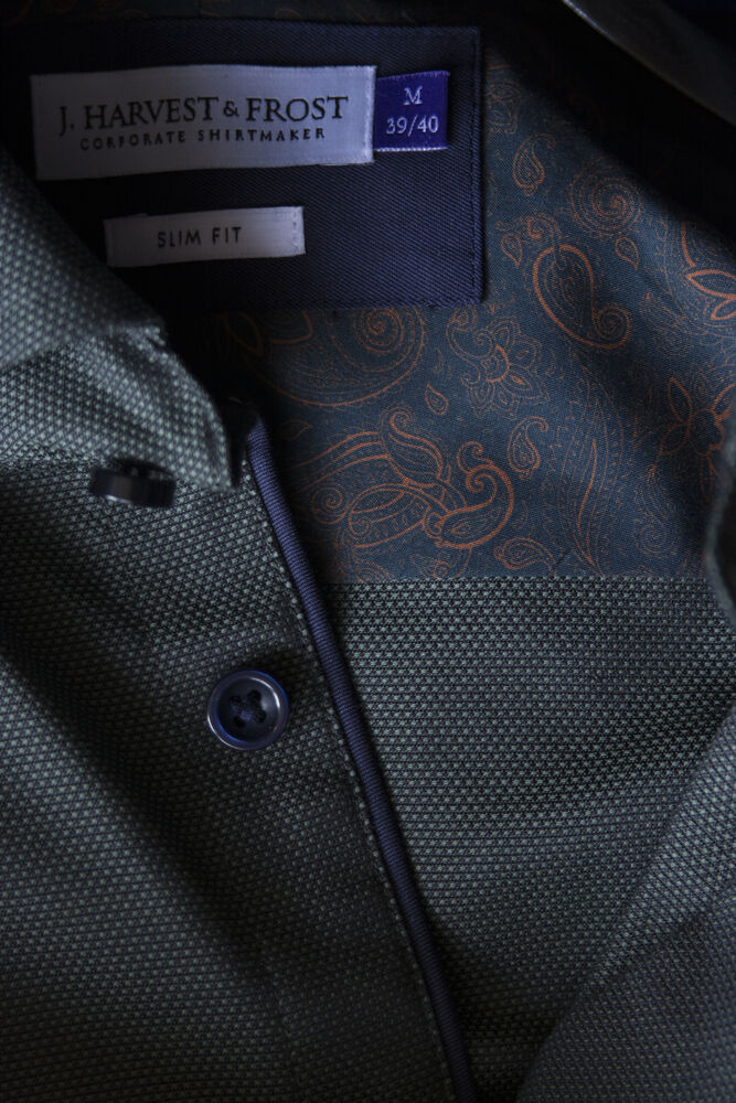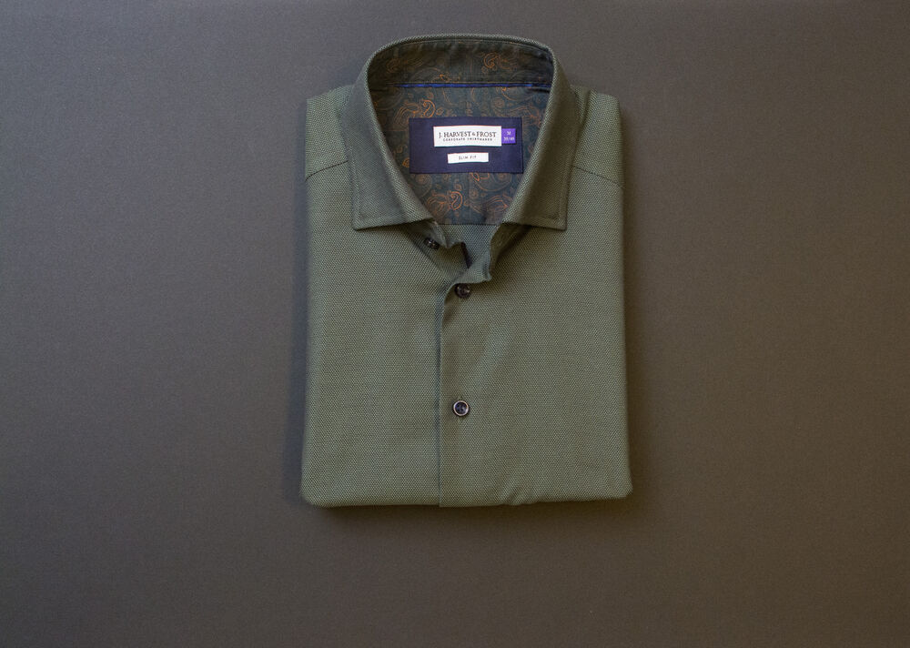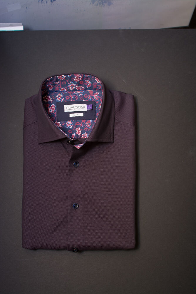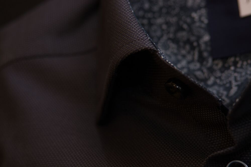 • Modern cut-away collar with hidden button down