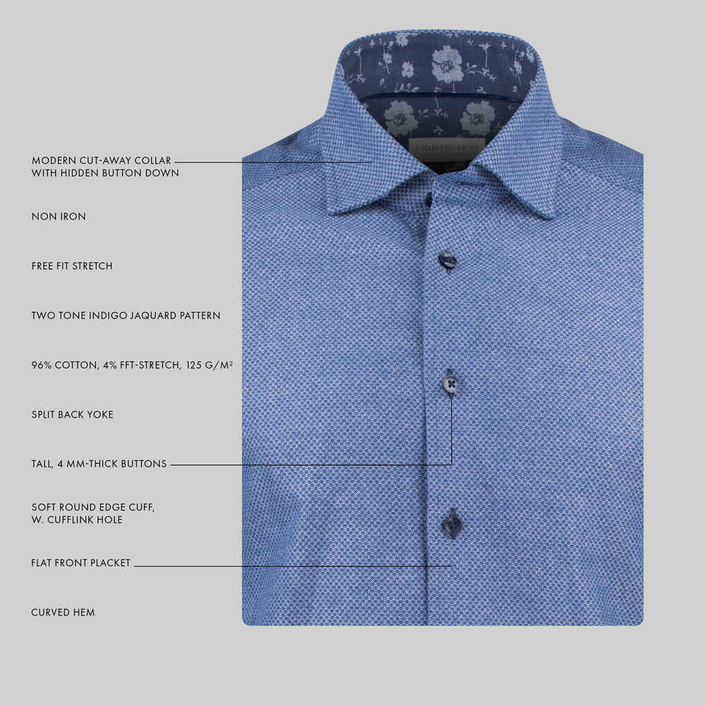 En luftig og dresset Non – Iron skjorte med en børstet overflate som gir et unikt, lukseriøst og supermykt inntrykk. Skjorten har all komfort som behøves og opp til 20% stretch. Blå detaljer i kragen, mansjetter og ved knappene.