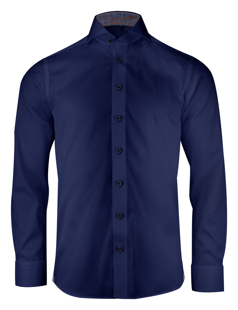 En ny klassisk skjorte i samme ånd som den gamle Purple Bow 46. Microcord-strukturen i stoffet gjør at skjorten skiller seg ut sammenlignet med våre klassiske twillskjorter. Stoffet i kombinasjon med en ekstrem cut-away krage og ny tøff paisley-kontrast, gir et dristig statement. Kontrasten er tydelig på det hvite og mer diskret på det luksuriøse marineblå stoffet. Bruk skjorten sammen med jeans og blazer eller med dress og sneakers og du vil se upåklagelig ut både på kontoret og i middagsselskapet.