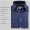 • Modern cutaway collar with a soft interlining and hidden button down