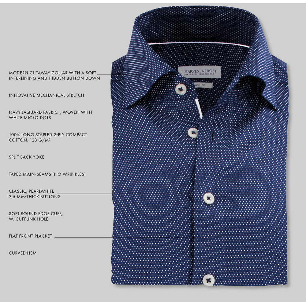 • Navy jaquard fabric, woven with white micro dots
