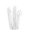 Et sett med bestikk i akrylplast. Fire gafler, fire kniver og fire skjeer. Perfekt til å ta med ut på piknik og i båten, eller hvorfor ikke dekke fint på til en sommermiddag ute på altanen.