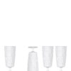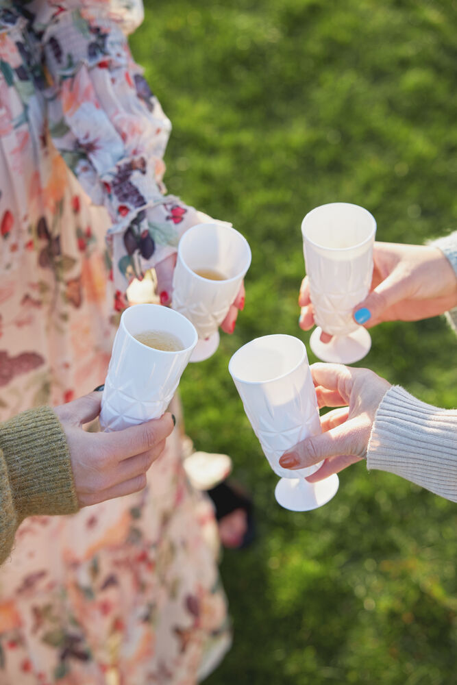 Et høyt glass på fot, laget av akrylplast, i en luksuriøs eggeskallhvit farge med et vakkert krystallmønster. Glasset tilhører Piknik-serien og fungerer godt på stranden, i skogen, i båten og i vinterhagen. Vi liker å bruke dette glasset til juice men også til en drink på en varm sommernatt. Finnes også i klar plast (artikkel 5017784). Leveres i 4-pakning.