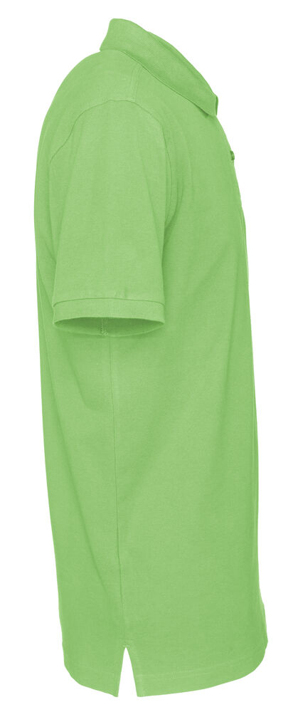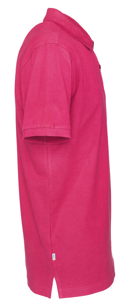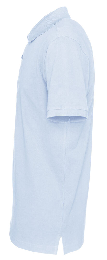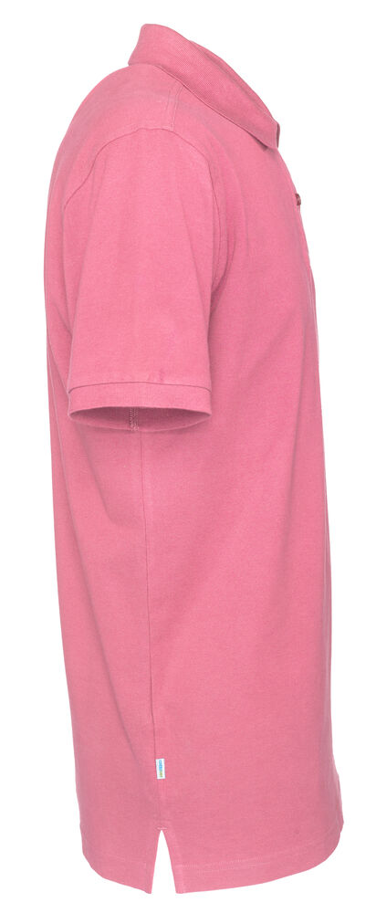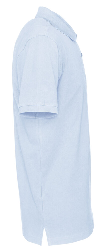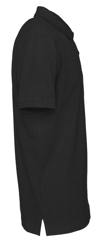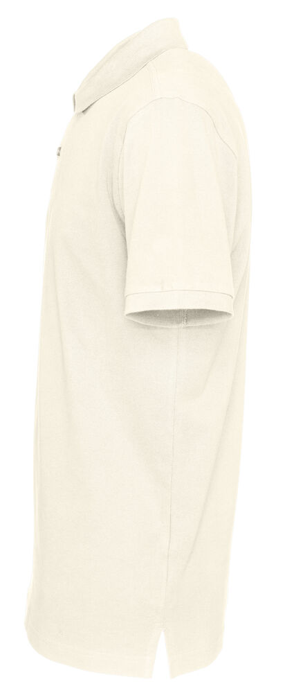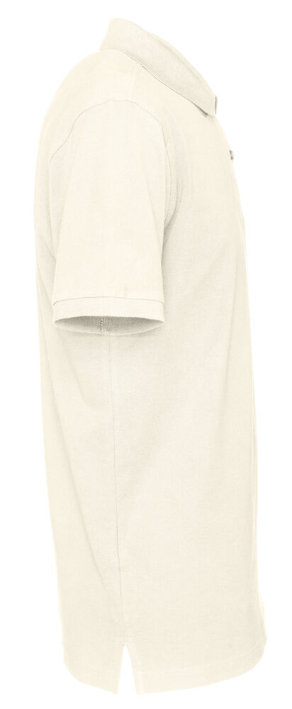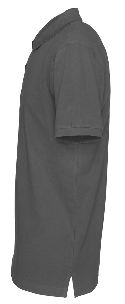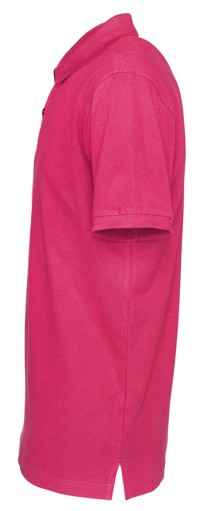 Kortermet pique i klassisk pique-strikk. Modellen har normal passform, strikket ribb på krage og ermer, to knapper i den forsterkede knappestolpen og splitt i siden.