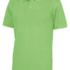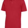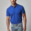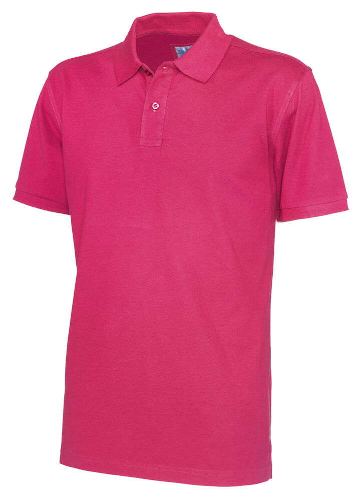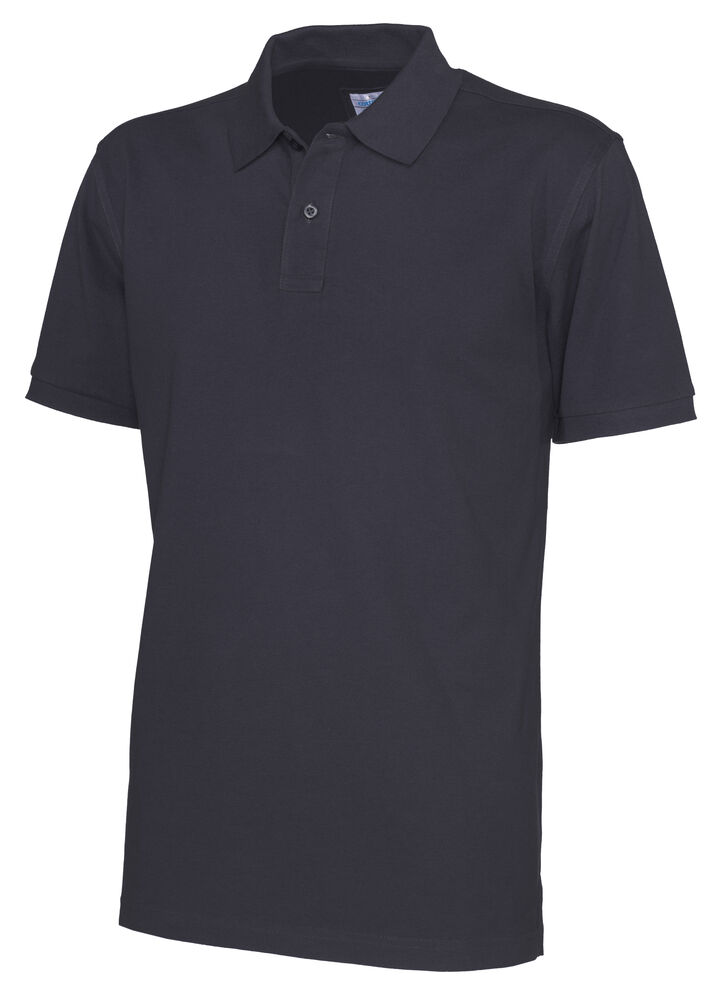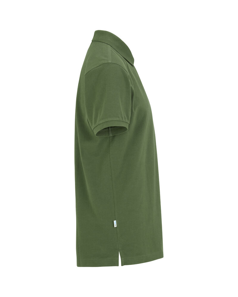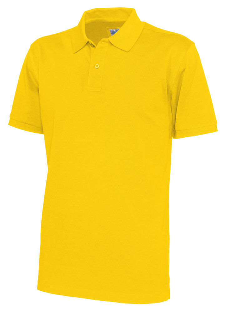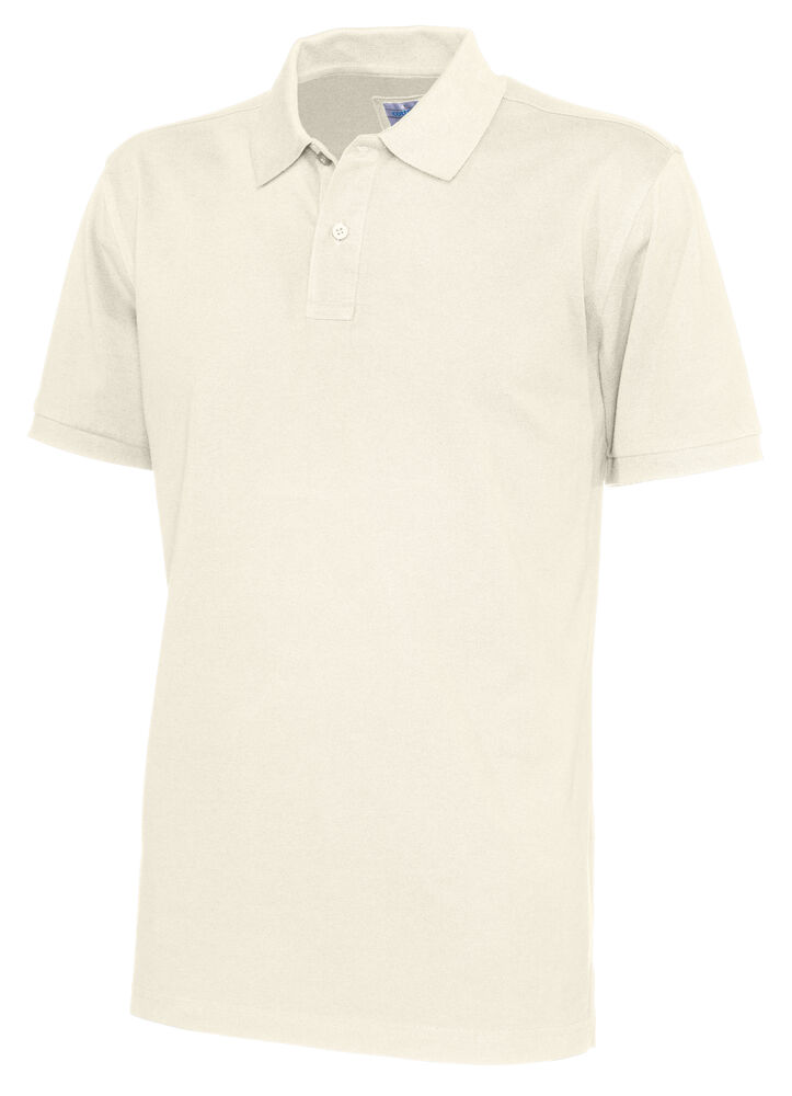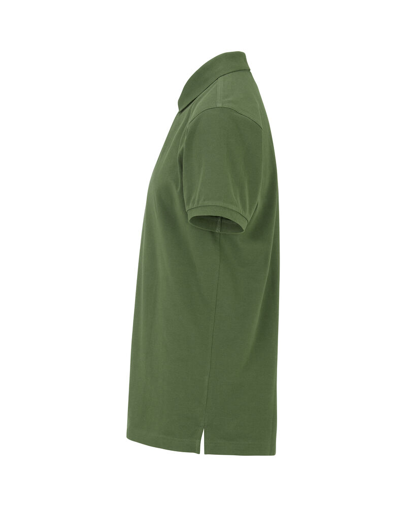 Kortermet pique i klassisk pique-strikk. Modellen har normal passform, strikket ribb på krage og ermer, to knapper i den forsterkede knappestolpen og splitt i siden.