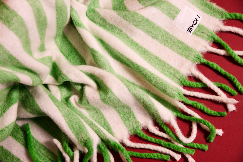 Det er vanskelig å ikke bli forelsket i pleddet Eiden. Varm, myk og herlig – akkurat som en god pledd skal være. Med et bølgestripet mønster kommer den i to herlige fargekombinasjoner som gjør den enkel å matche med Pathi og Paddi og mange flere venner. Tilgjengelig i to fargekombinasjoner: beige/svart og grønn/hvit. Størrelse 115×150 cm. Kommer med hangtag.