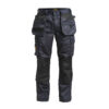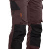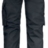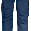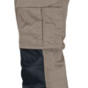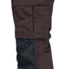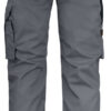 Lettstelt polyester/bomull som holder på fargen og formen. Hengelommer med ekstra rom og en ekstra lomme med glidelås. Baklommer med klaff og borrelås. Benlomme med ekstra rom og klaff med borrelås. Tommestokklomme med knivholder. Forsterkning i hengelommer og på knebeskyttelseslommer. C42-64 kan forlenges med 5 cm ved at kanten brettes ned.