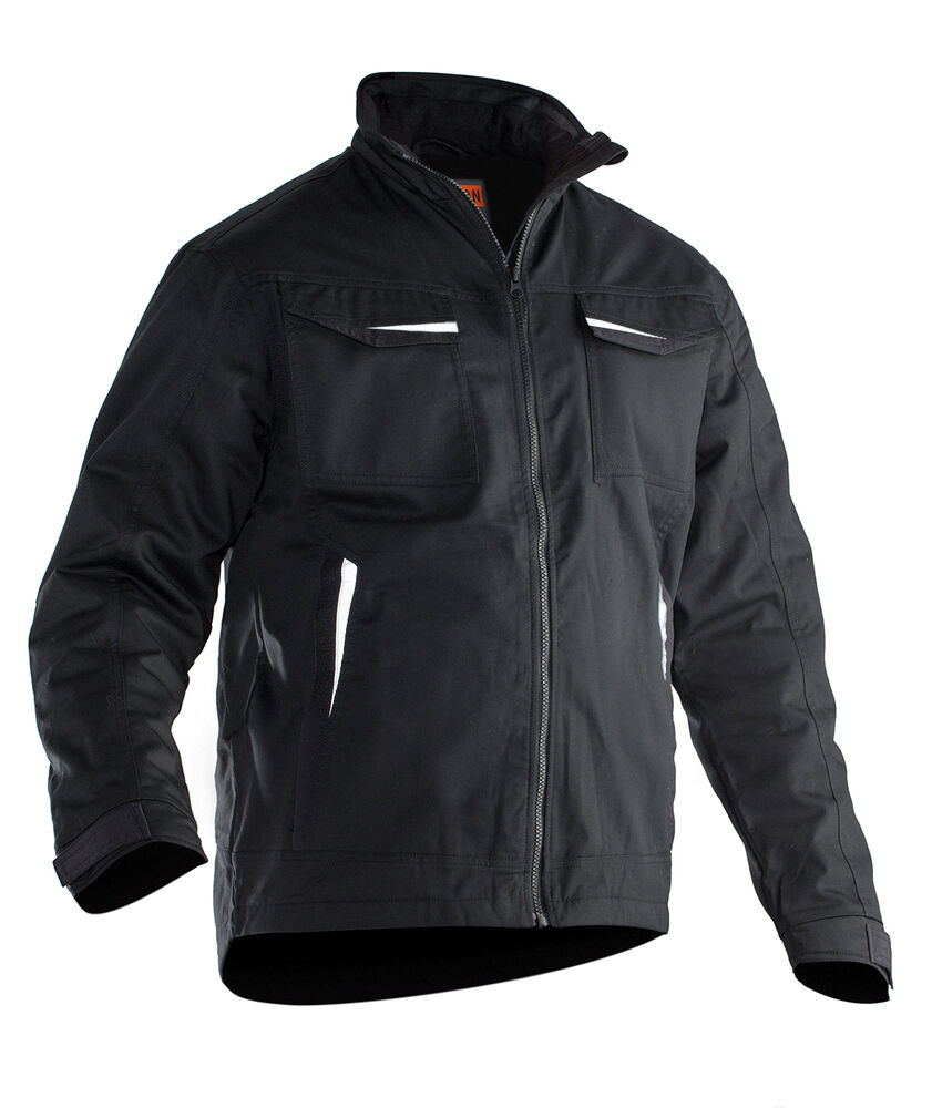Servicejakke i lettstelt polyester/bomull. To brystlommer med borrelås, D-ring i venstre brystlomme for ID-kort. Børstet myk polyester i kragen. Frontlommer med glidelås. Tre innerlommer; to åpne og én for mobiltelefon. Regulerbar mansjett. Reflekser foran på lommeklaff. Forlenget rygg med refleksbise.