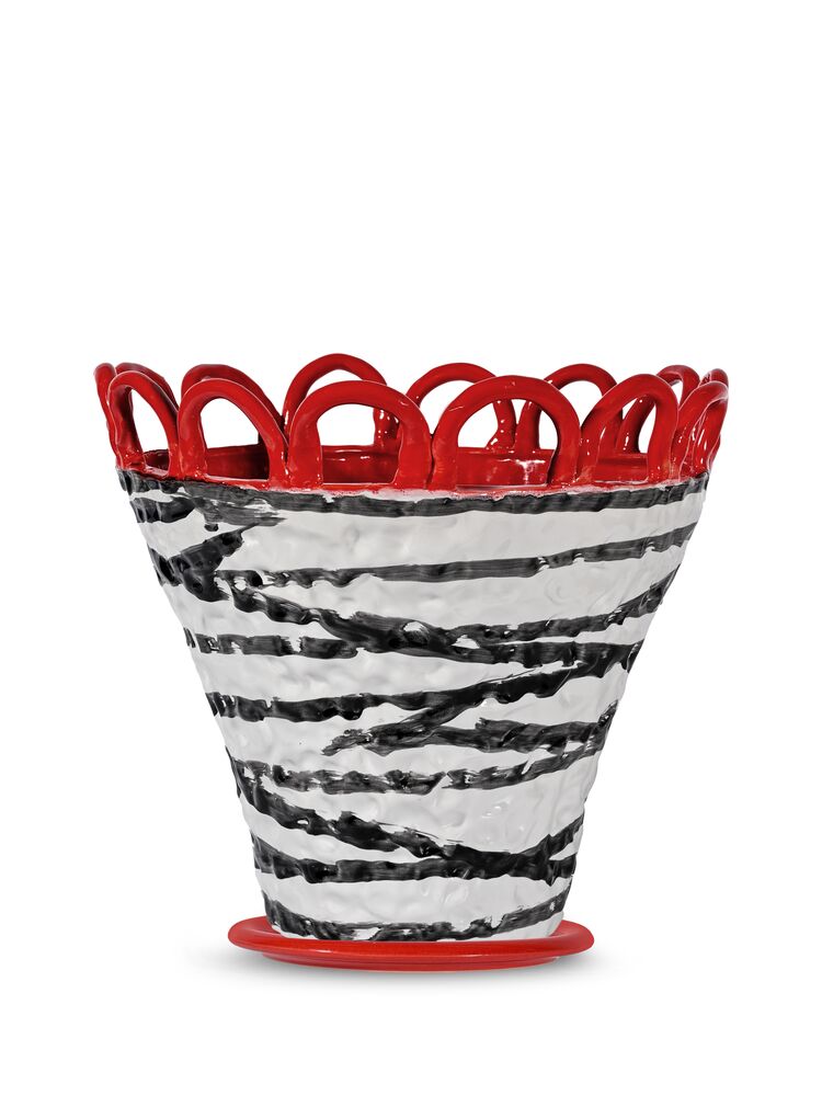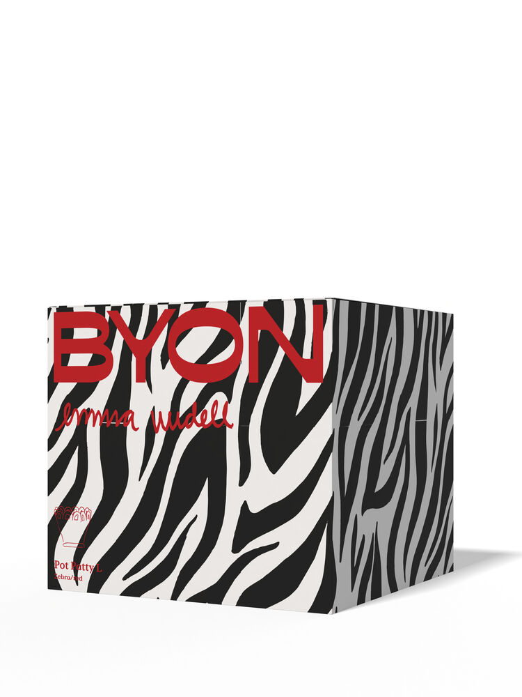 Patty er en dristig og leken blomsterpotte som personifiserer Byons ånd mer enn noe annet. Da Emma skulle skape en kolleksjon for Byon, falt valget naturlig på hennes signatur – sebraen og det stripete mønsteret – for å skape et sterkt statement i hjemmet. Sebramønster og poppete glasurer har lenge vært en del av Emmas kunstnerskap, og i Patty forenes de i en uttrykksfull kombinasjon av to verdener. Potten leveres med fat og er utstyrt med dreneringshull, noe som gjør den både praktisk og dekorativ. Den er håndlaget i steingods og finnes i flere fargevarianter og størrelser. Håndlaget. Farge- og strukturforskjeller kan forekomme. Alle pottene er unike. Designet av Byon x Emma Widell. Leveres i Byon-eske.