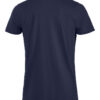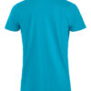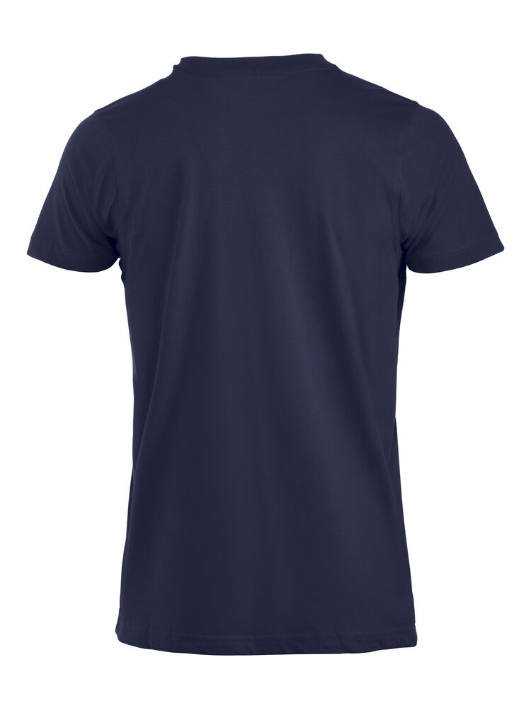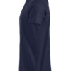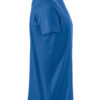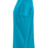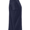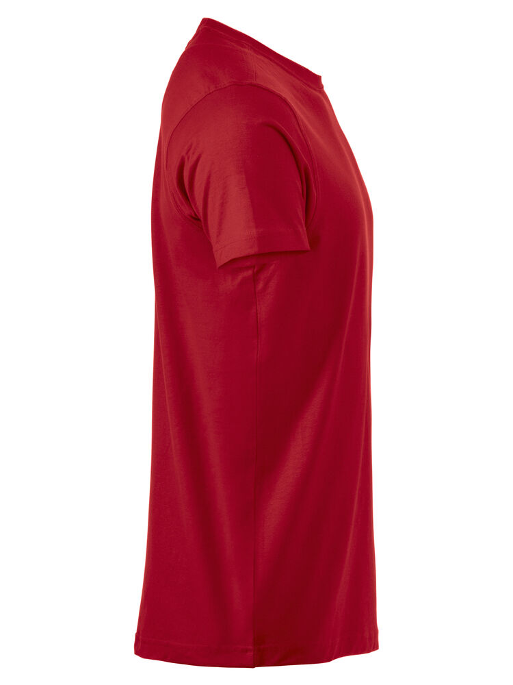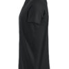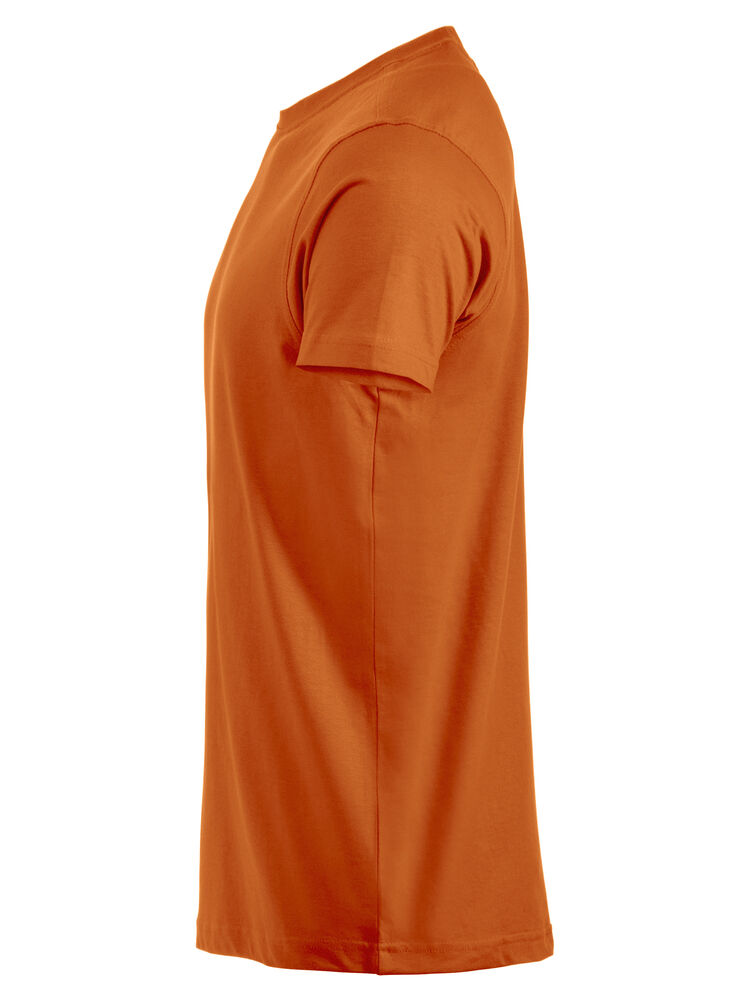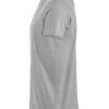 Moderne t-shirt i forkrympet single jersey med sidesømmer, dobbel krage og rundstrikket nakkebånd.