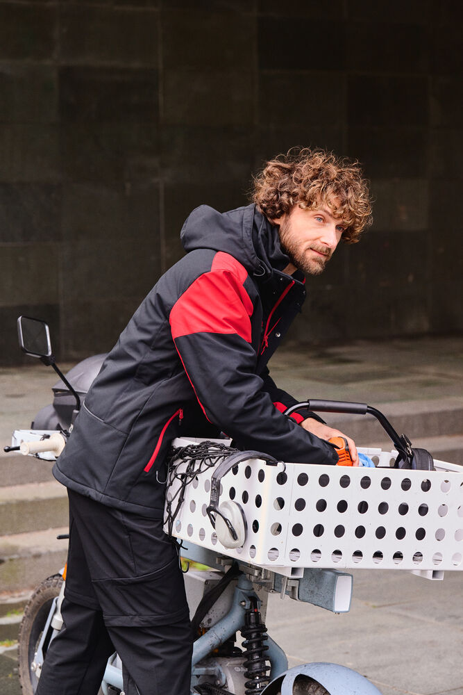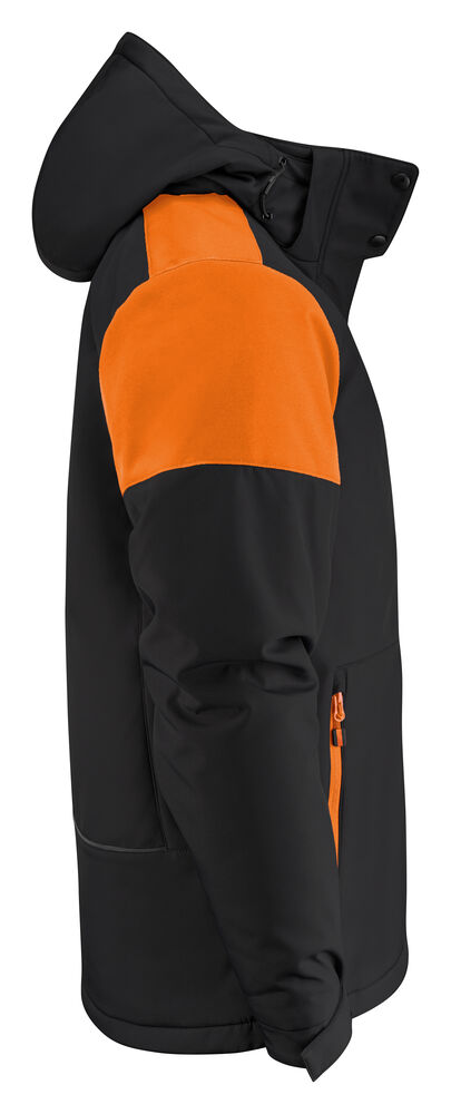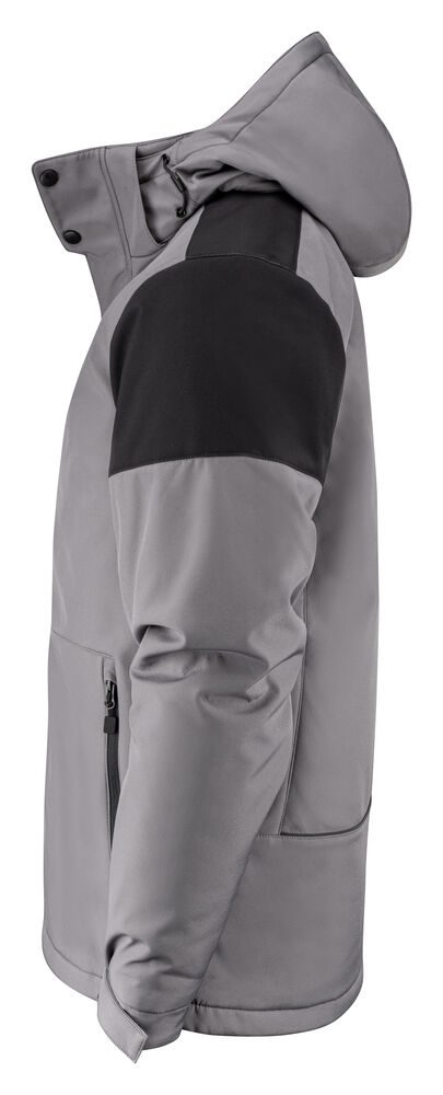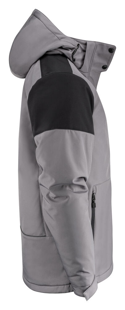 Tofarget, vattert softshelljakke med avtagbar hette. Glidelåsbeskyttelse med trykknapper i front. Snøring ved hetten og nederkant (midje) og borrelåsjustering i ermavslutningene. To innerlommer med glidelås. Reflekterende passpoal nederst på ryggen. Halsetikett som enkelt kan rives av, og separat størrelsesetikett. Vaskechiplomme på indre venstre sidesøm. Glidelås i kontrastfarge. Zip pullers i flere farger selges separat. Øko-Tex 100 sertifisert. Pakket i en komposterbar pose.