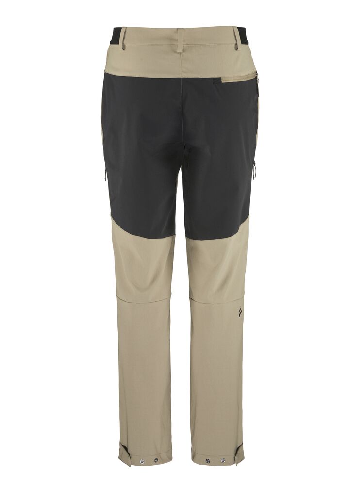 Turbuksen er laget av slitesterkt 2-veis stretchmateriale og har 4-veis stretchpaneler ved knær, midje og sete for å oppnå optimal bevegelsesfrihet og komfort. Buksen har også beltehemper, glidelåslomme på bena, baklomme med glidelås og to sidelommer.