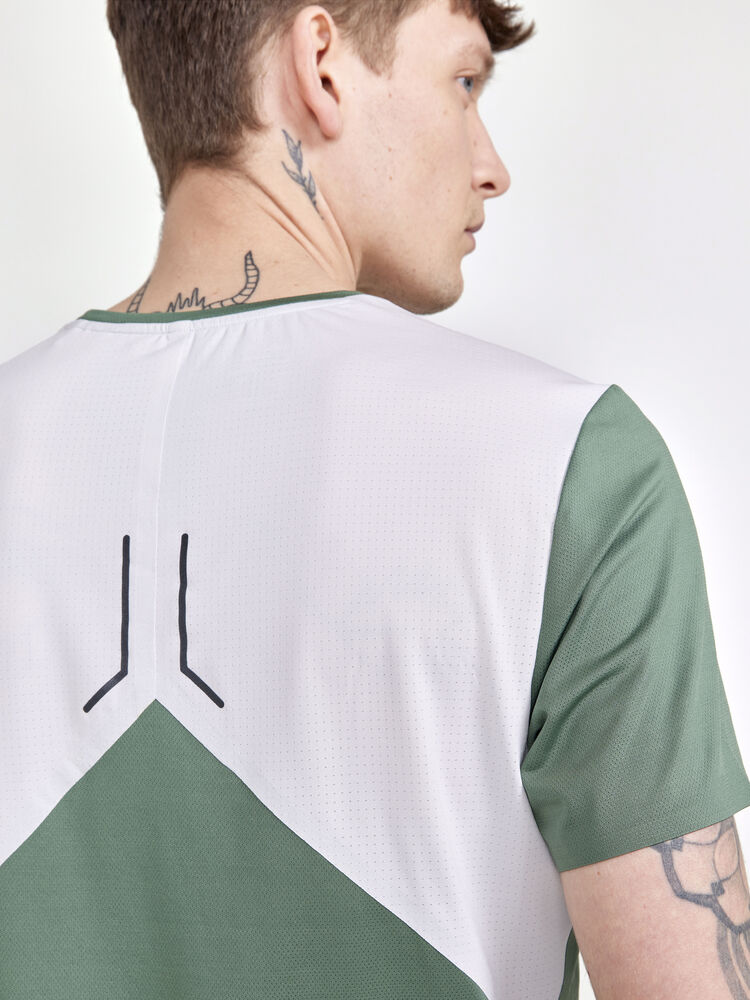 Denne teknisk avanserte t-skjorten er laget av lette, svært funksjonelle materialer som gir effektiv fukttransport under intense treningsøkter. T-skjorten har også strategisk plassert mesh som gir ekstra ventilasjon og kjøling, samt teipede lette sømmer som gir optimal komfort.