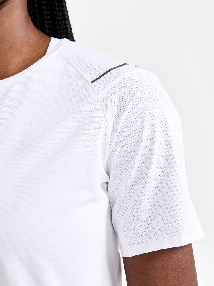 Denne teknisk avanserte t-skjorten er laget av et lett, høyfunksjonelt materiale som gir effektiv fukttransport under intense treningsøkter. T-skjorten har strategisk plasserte paneler av mesh som gir ekstra ventilasjon og en kjølende effekt, samt teipede lette sømmer som gir optimal komfort.