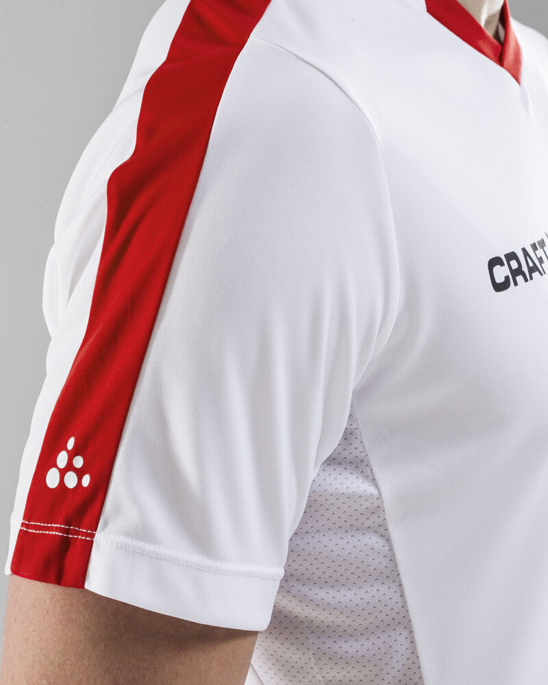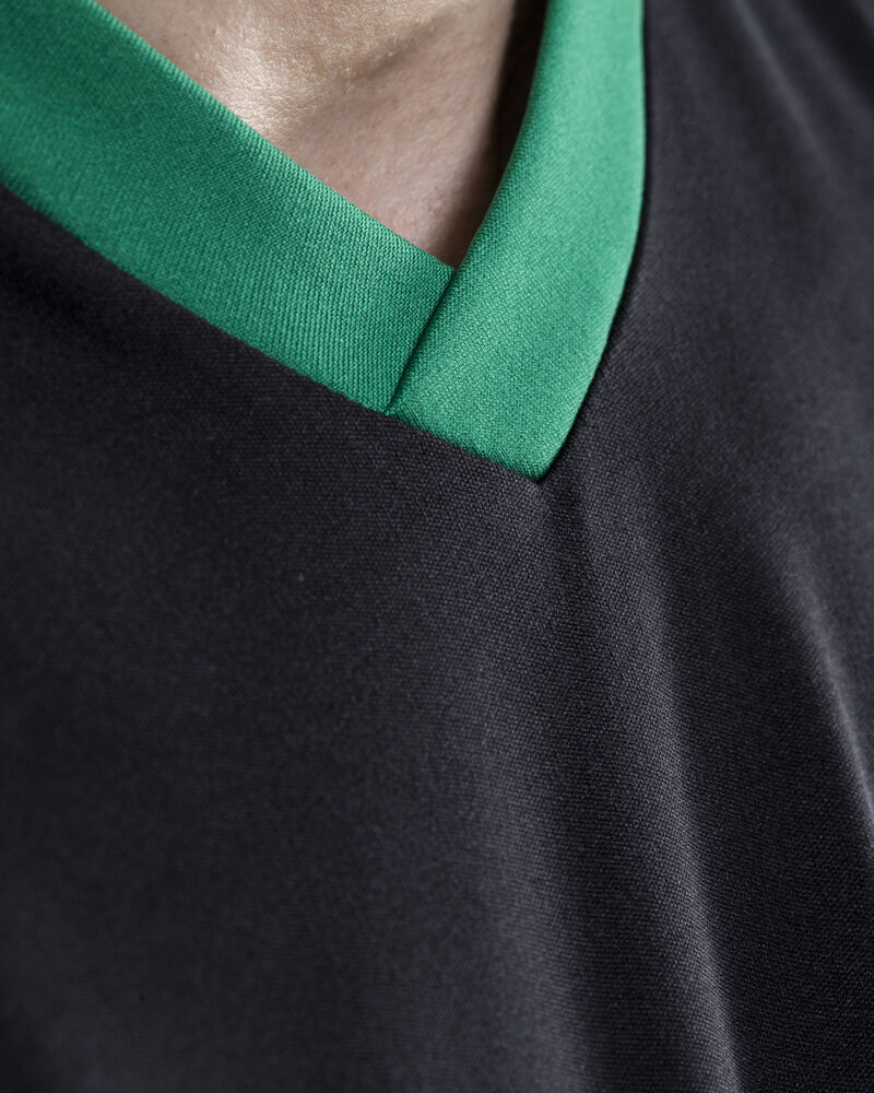 Matchtrøye i et godt og funksjonelt stretchmateriale. God fukttransport for optimal prestasjon. Meshpaneler under armene gir effektiv regulering av kroppstemeraturen. Elastisitet og ergonomisk design gir god passform og optimal bevegelsesfrihet. V-hals krage matcher kontrastfargen på sidene. Utgående modell