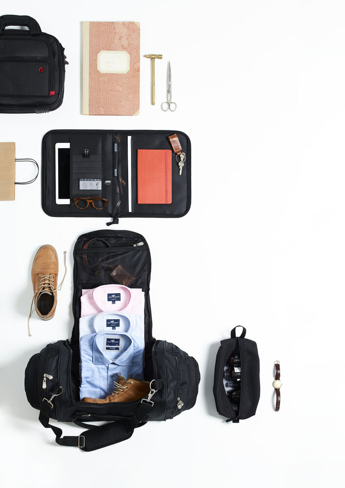 Toalettmappe med hank som gjør at den kan henges opp på en