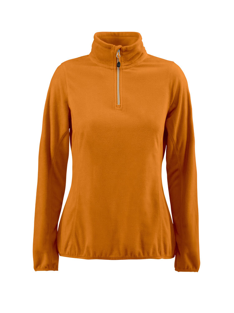Microfleecetrøye med half-zip med kontrastfarget glidelås. Kontrastfarget glidelås i lommer og dekorative flatlocksømmer på ermene. Elastisk tape i ermavslutning og i nederkant.