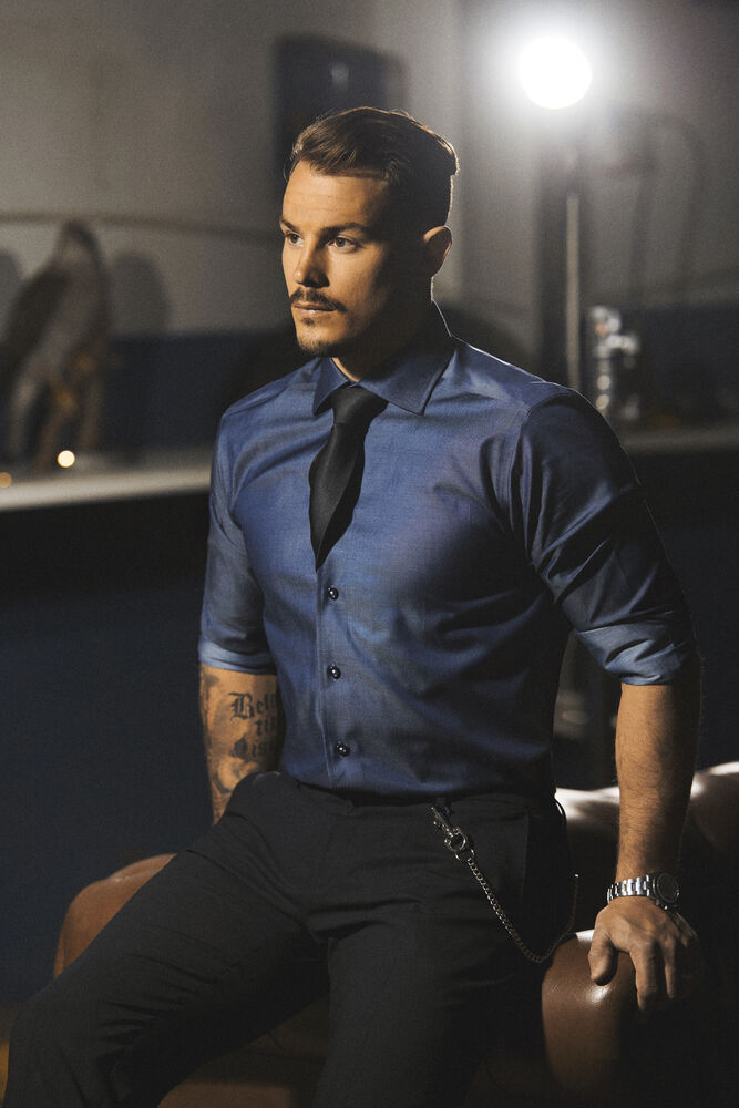 Den perfekte skjorten for enhver anledning. Med den karakteristiske indigofargen kan vårt berømte strykefrie stoff av fin twill minne deg om en kul “denimskjorte”. Red Bow 120 er designet med et konstraterende ton-i-ton paisley mønster i krage og mansjetter, samt hvite detaljer i knappene og rundt knappehullene.