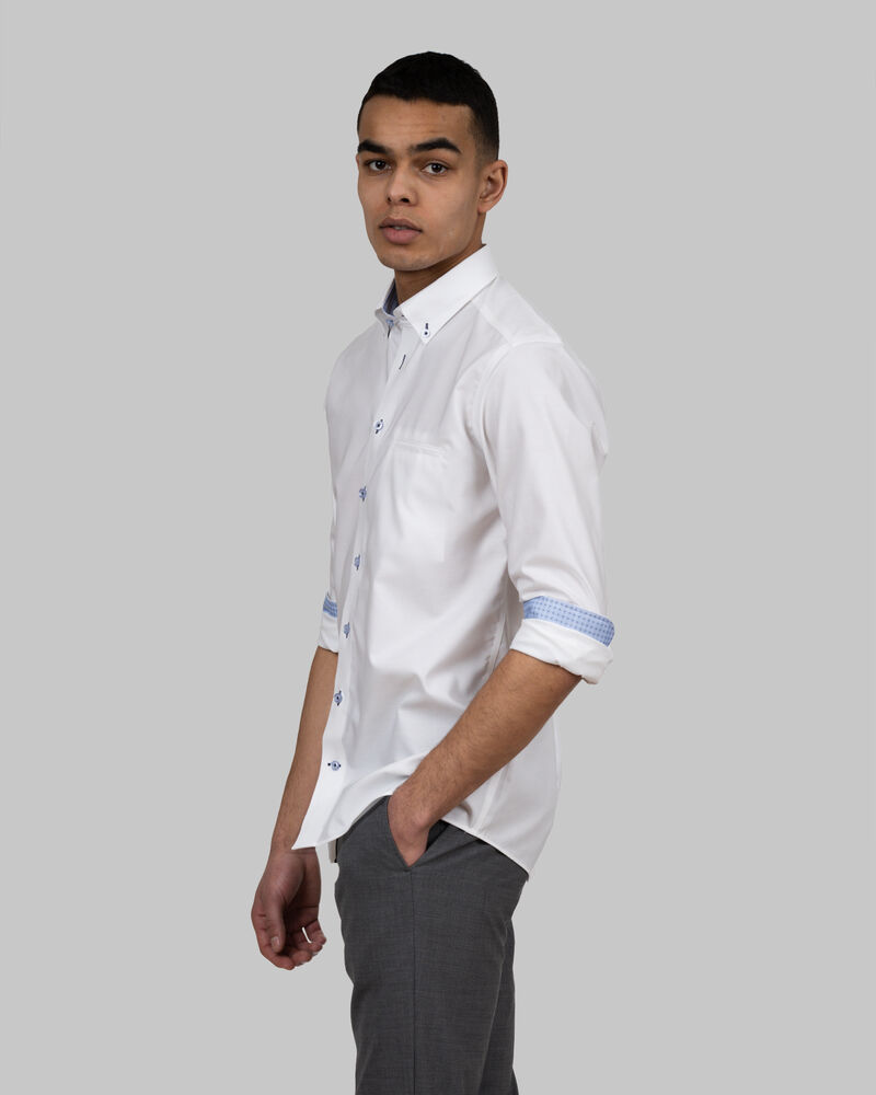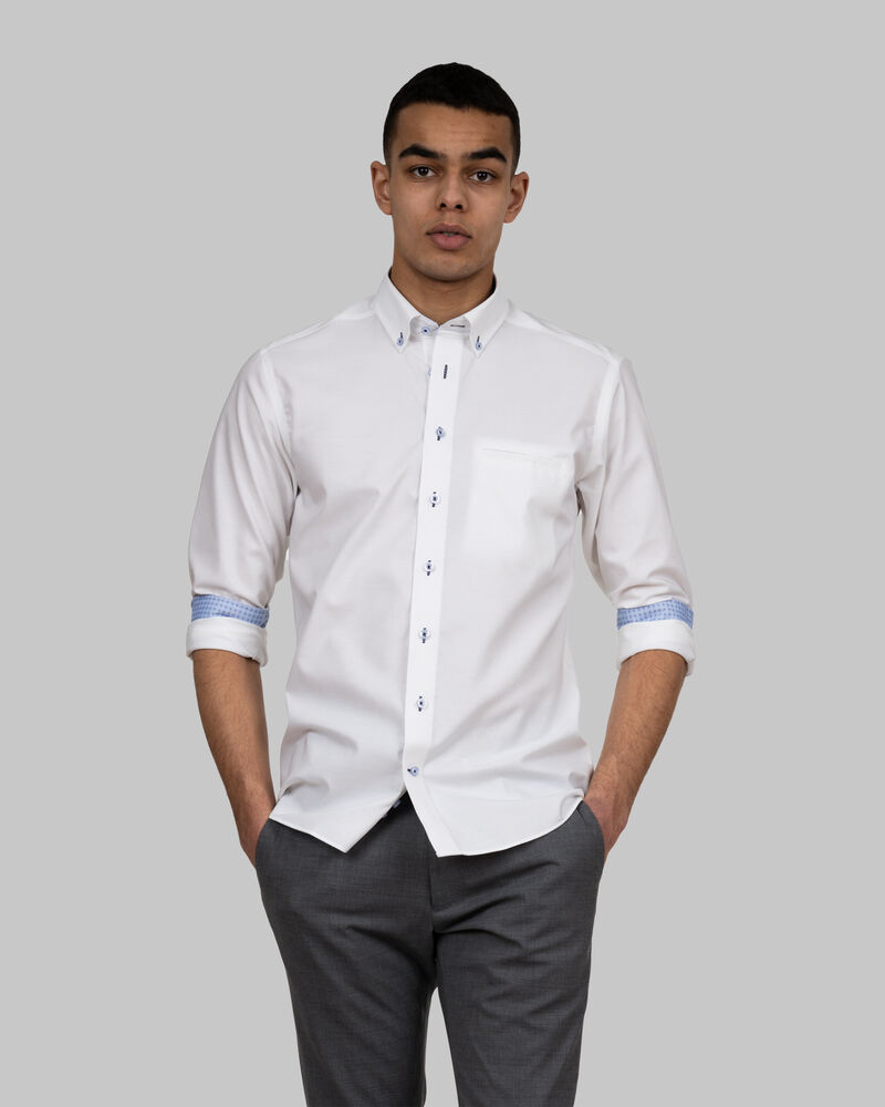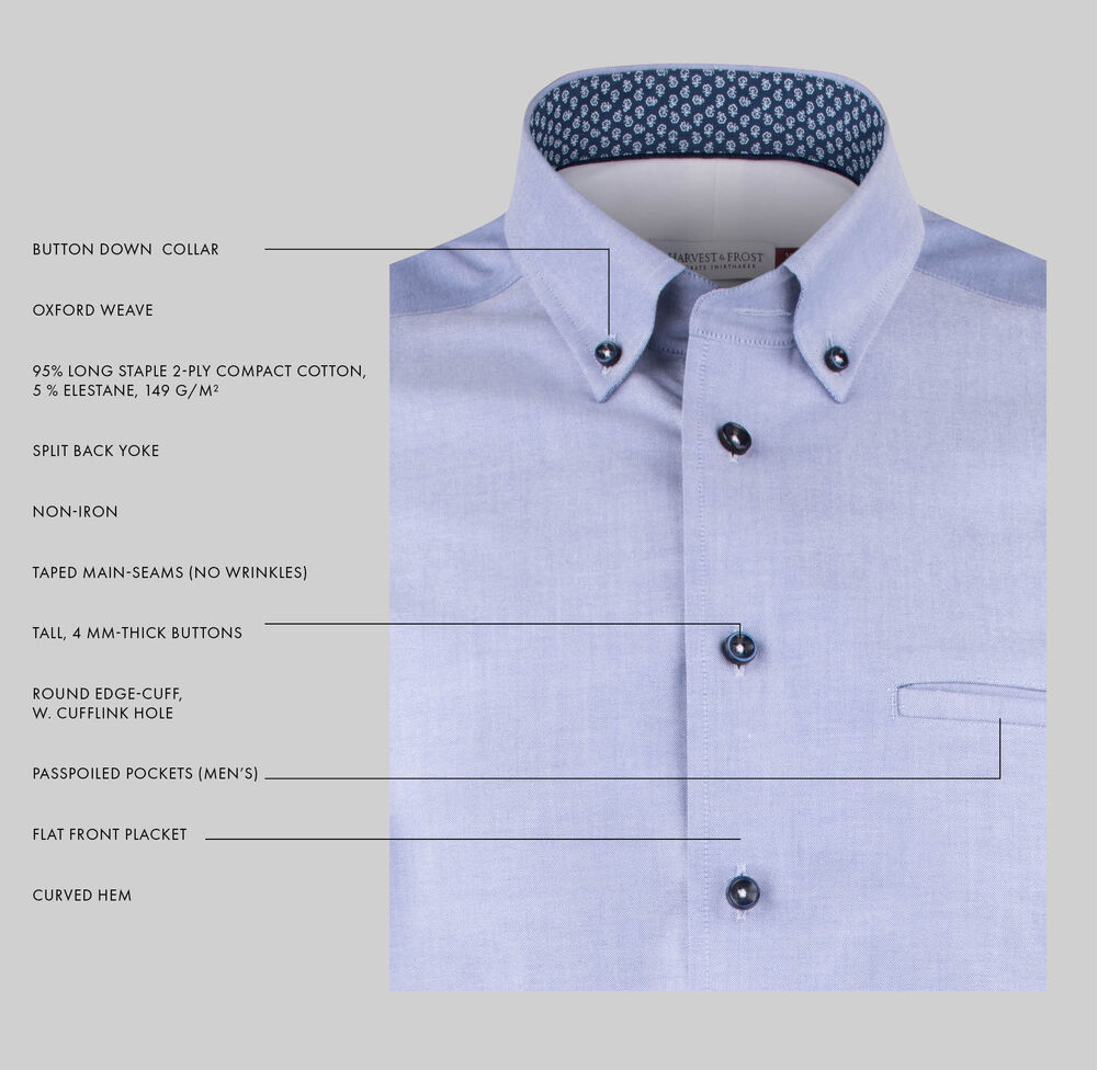 Vi kan være et av svært få varemerker som – for tiden – kan håndtere kombinasjonen strykefri og stretch.. Det å få disse funksjonene inn i en enkelt skjorte er en svært vanskelig prosess som krever mye planlegging, testing og utvikling.