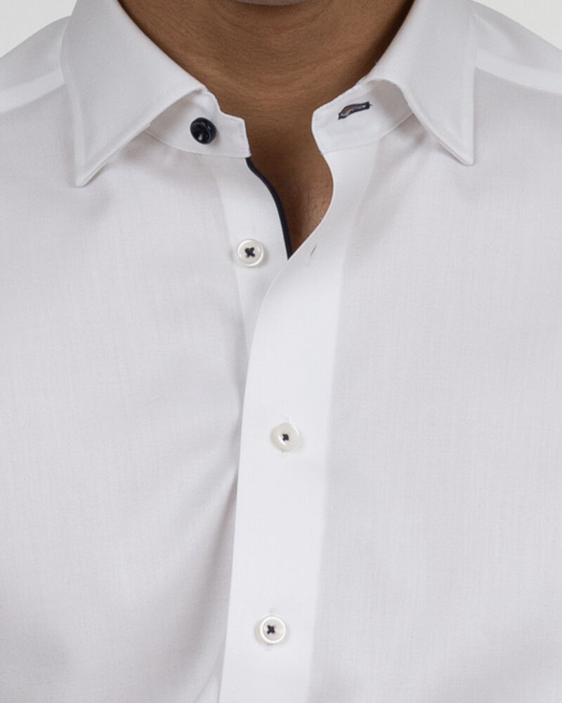 • Hidden button down collar