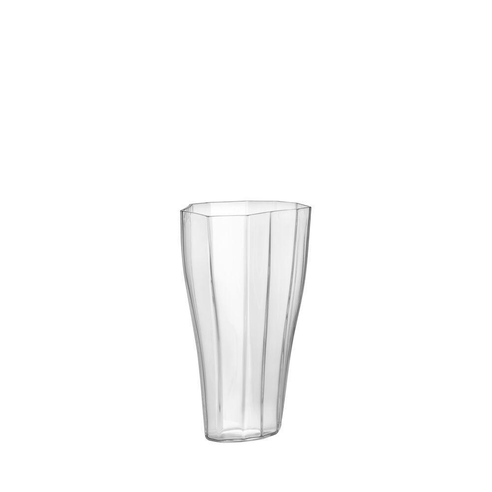 Med Reed viser Monica Förster hvordan man skaper en sterk karakter ved å fremheve folder i stedet for å prøve å skjule dem. Overført til glass gir det en følelse av forsiktig bevegelse i det harde glasset. Vasen er blåst i klart glass eller grønt. Den mellomstore Reed-vasen passer veldig bra til snittblomster.