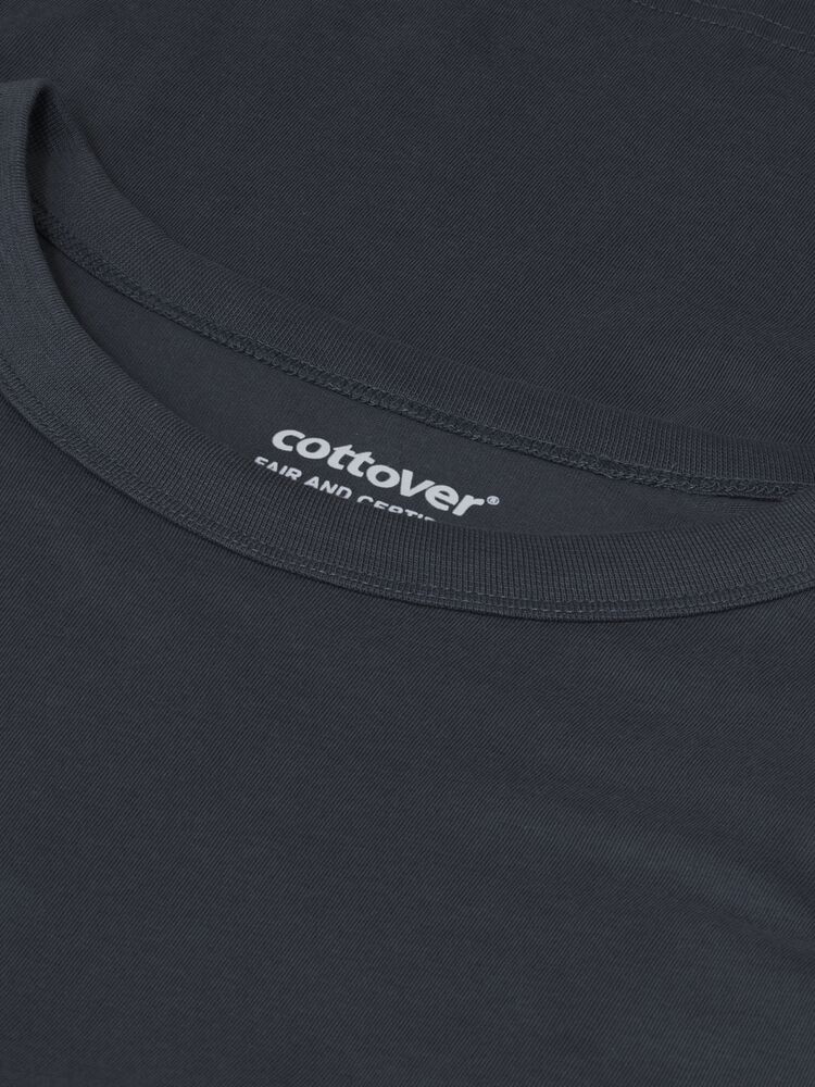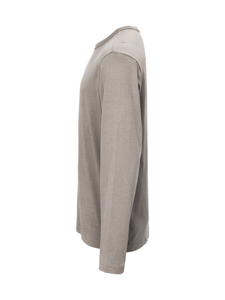 Langermet t-skjorte i løs passform som gir en sjenerøs, men ikke overdimensjonert silhuett. Fin utenpåliggende rund halsringning, rette ermeavslutninger og rettskåret nederkant. Trykt etikett i nakken.
