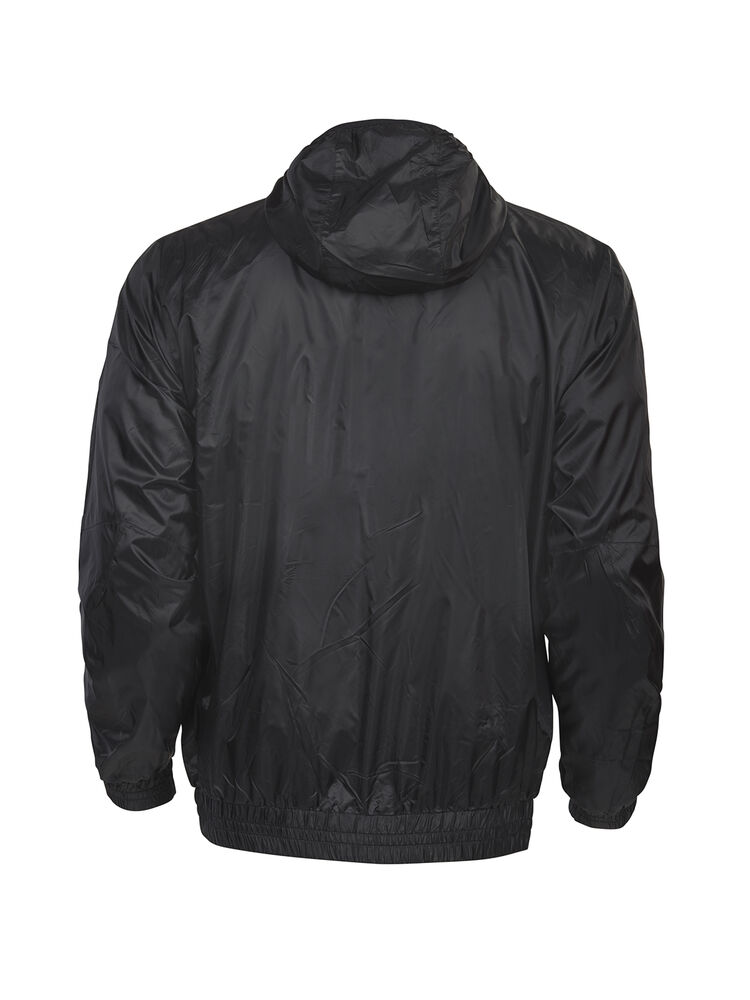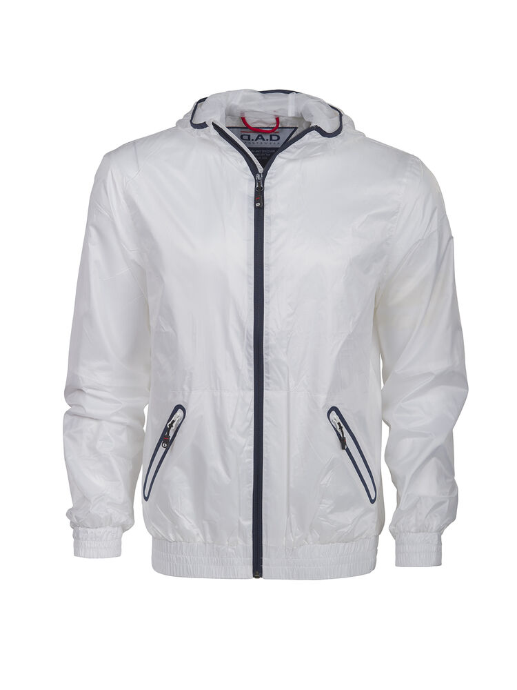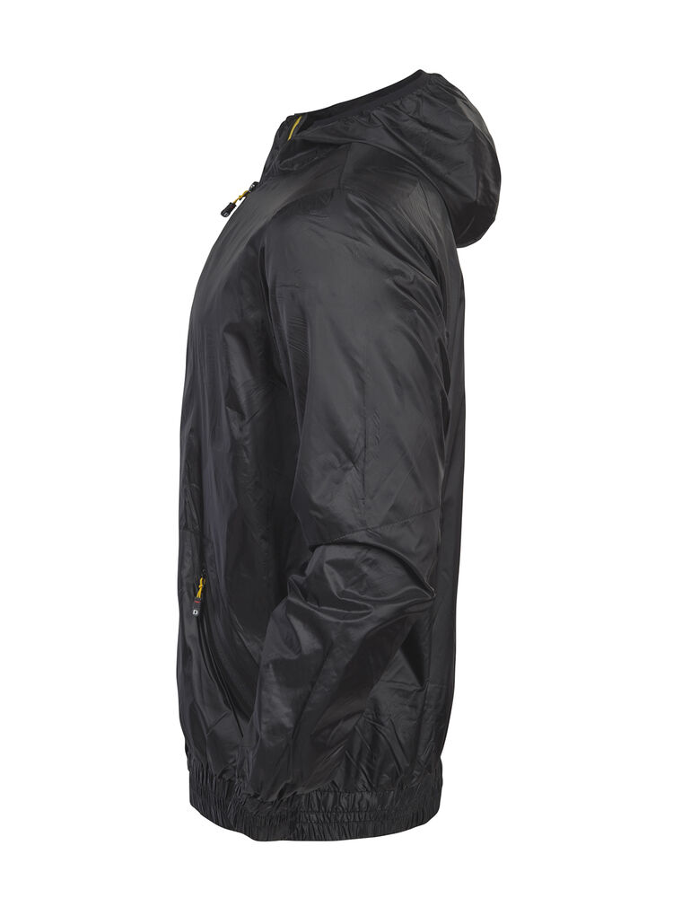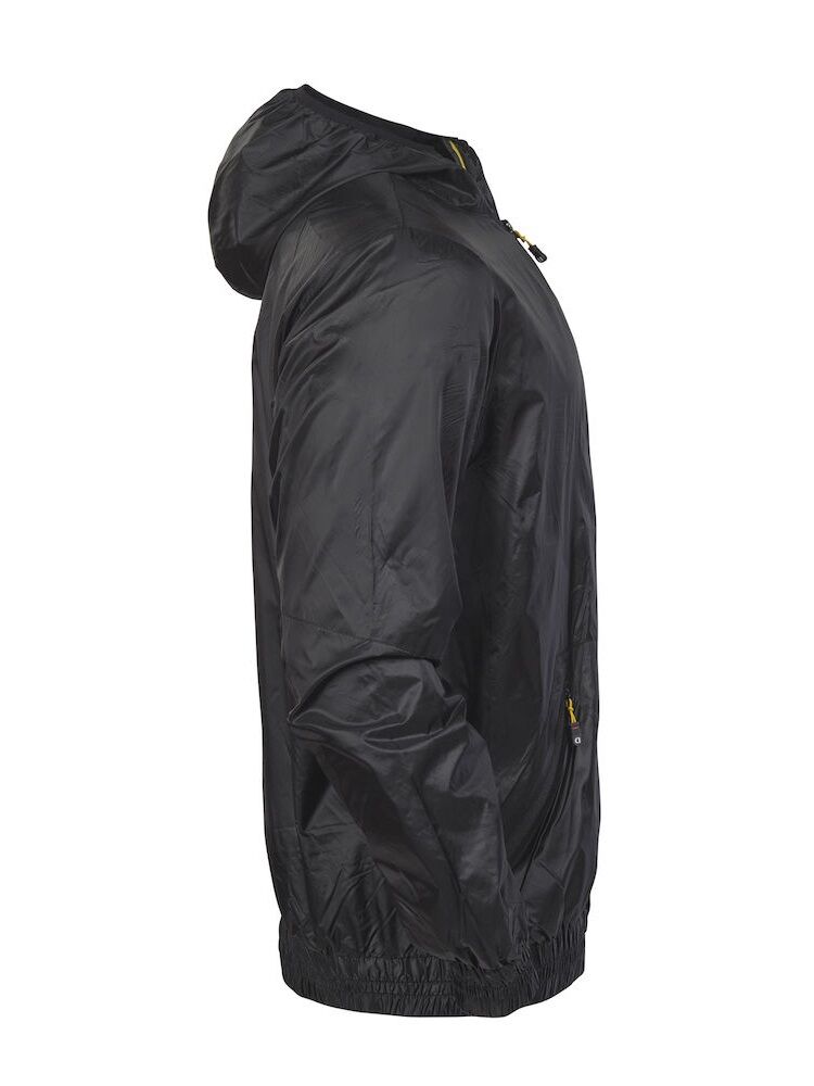Ultralett vindjakke i micro-ripstop og med meshfõr. Hette som sitter fast og forbøyde ermer for bedre passform. Sidelommer med glidelås og dekortransfer. Mansjett i nederkant og ermer. Lett og smidig å pakke sammen.