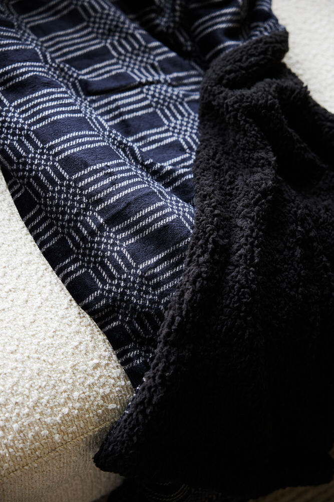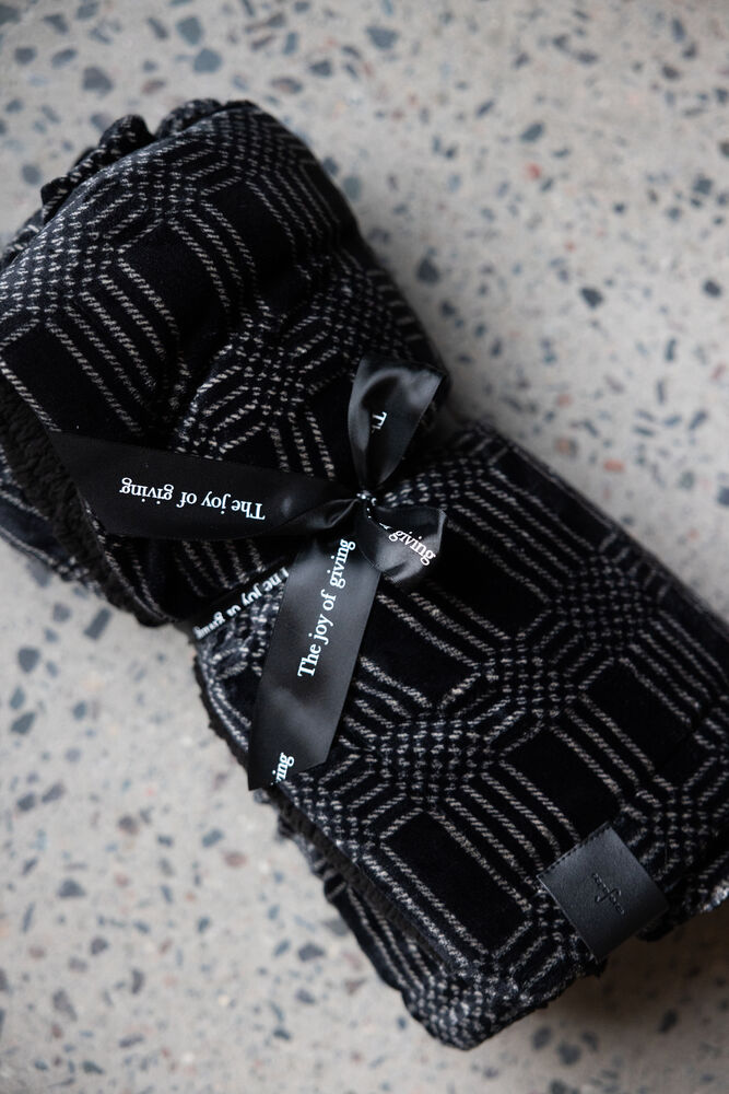 Ruter – hyllet, trendy, retro og mest av alt elsket! Den perfekte blandingen av klassiske og moderne ruter har blitt til virkelighet i pleddet Rut. På den ene siden er teppet laget av sherpa-materiale, et luftig materiale som minner om saueull. På den andre siden er myk fleece. Pleddet har en mørk bakgrunn med gyldengule linjer – alt for å passe inn ditt og alle andres hjem. Leveres i fin gaveeske.