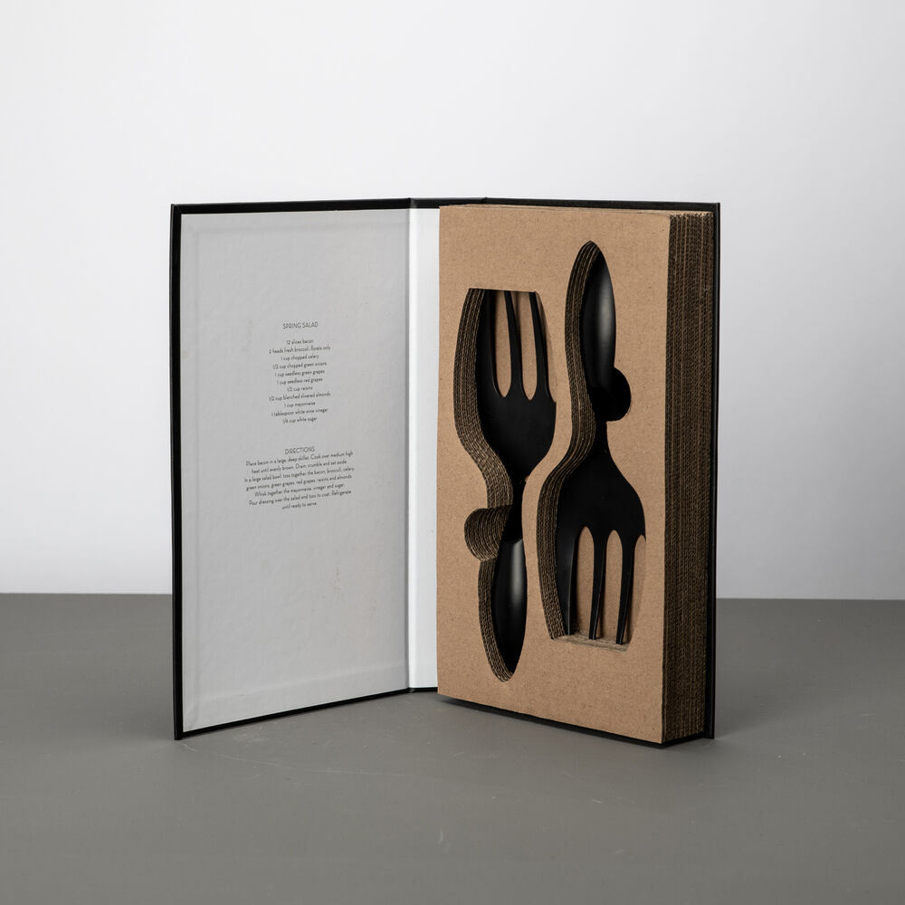 Et stilig salatbestikk i rustfritt svart stål.