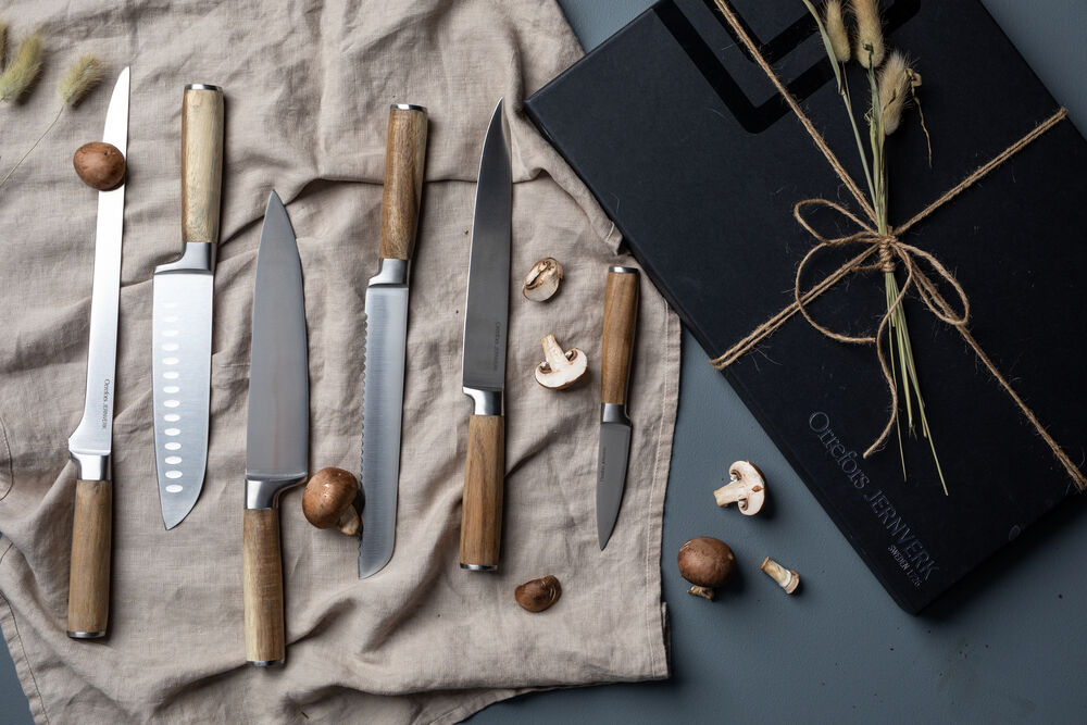 Satokukniven fra Orrefors Jernverk har et håndtak av akasietre som ligger behagelig i hånden. Oppbevar kniven i vår stilige knivblokk 410947.