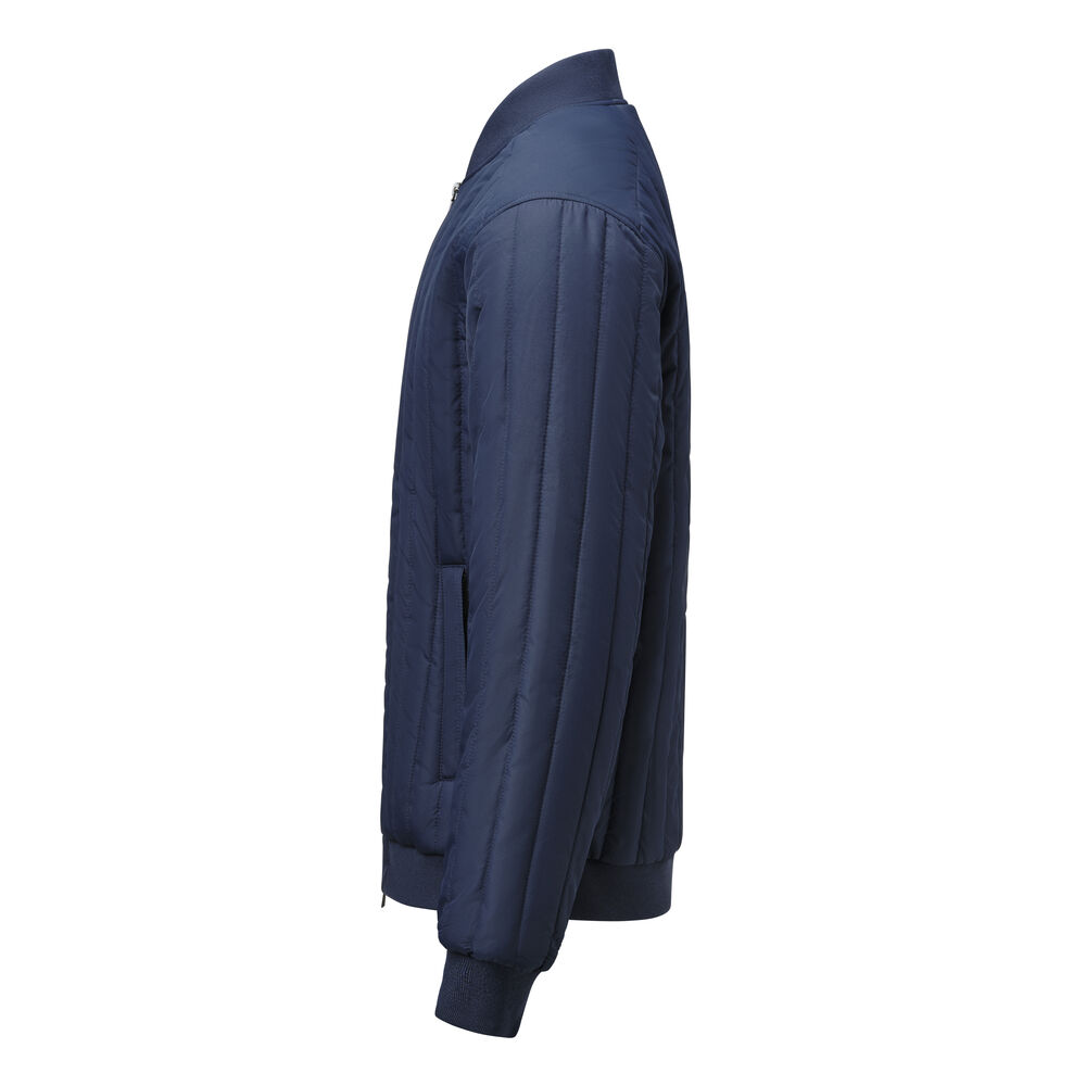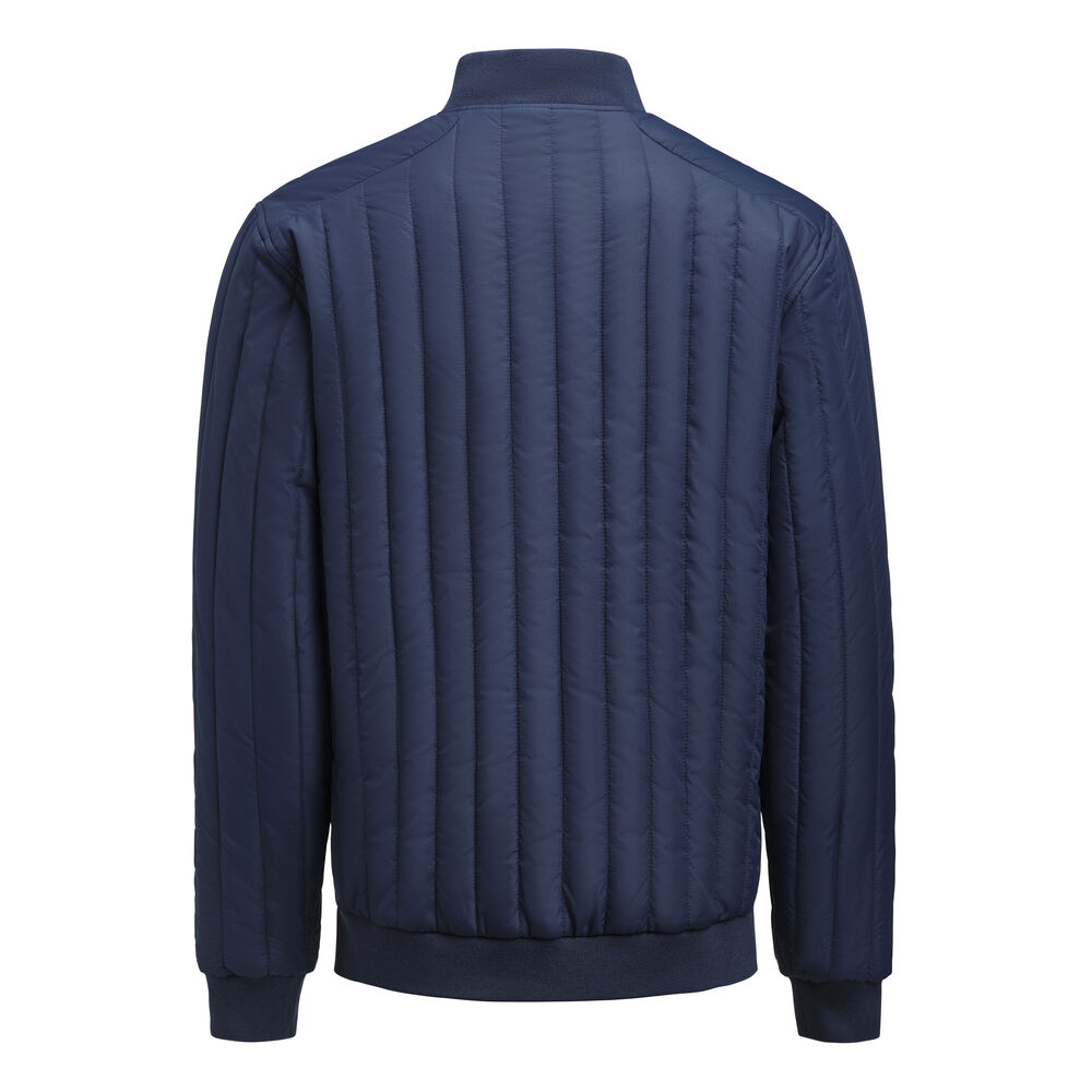 Scarsdale-jakken er en moderne tolkning av den tidløse bomberjakken. Denne lette jakken er laget av sertifisert resirkulert polyester, og leverer både stil og komfort i de kjøligere månedene. I likhet med vesten har den en elegant, vertikal kvilting som gir et moderne uttrykk. Den myke, ribbestrikkede kragen, mansjettene og nederkanten – med kontrasterende striper fra kolleksjonens fargepalett – gir et stilig og karakteristisk utseende.