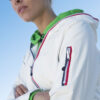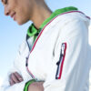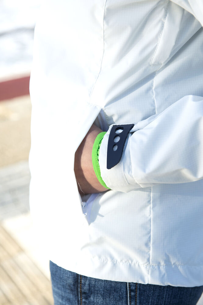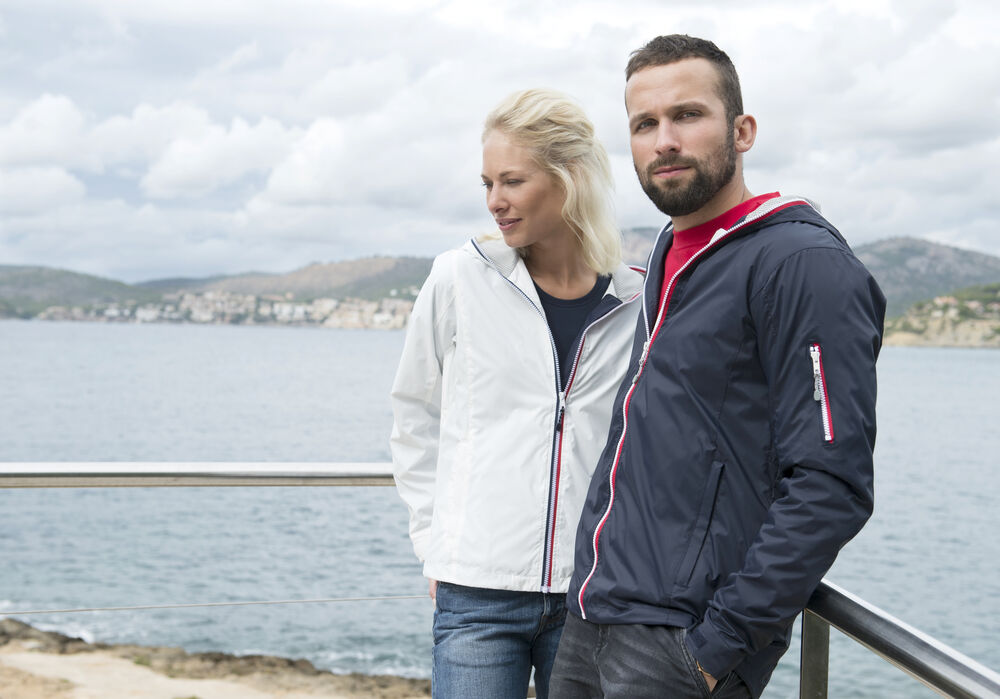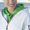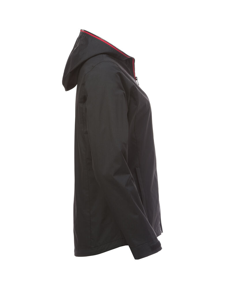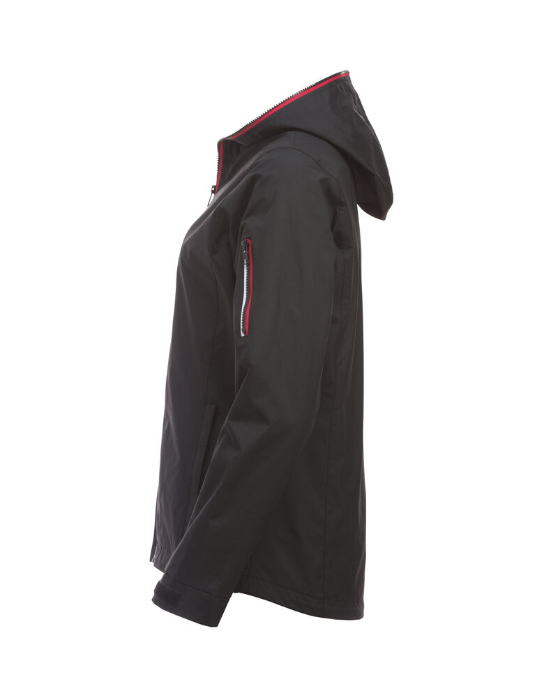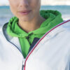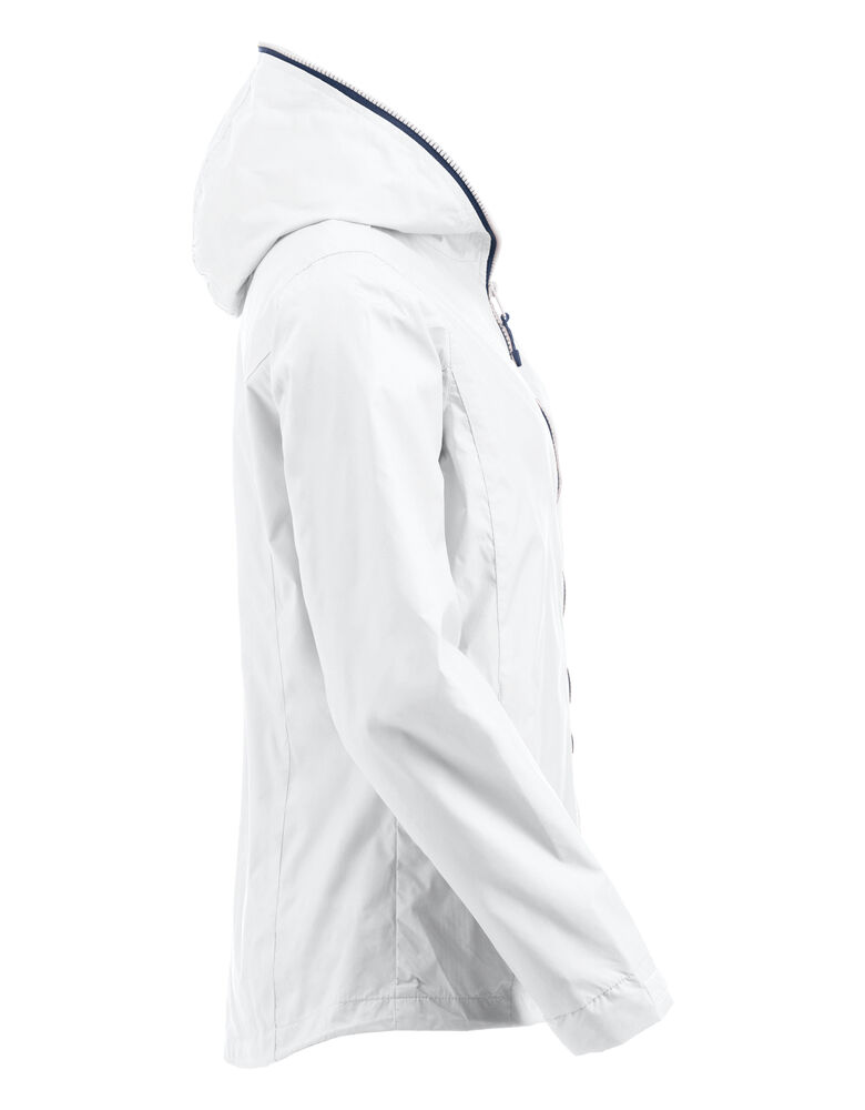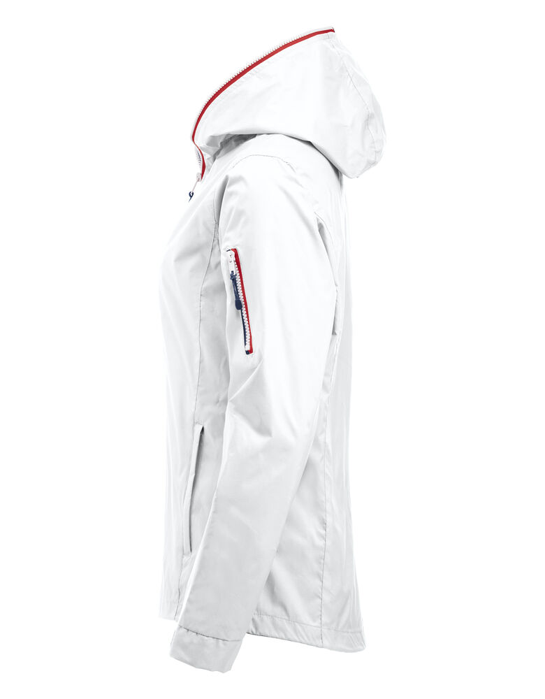 Trendy ripstopjakke med meshfôr og trefarget glidelås i front og på ermlommen. Fast hette, to sidelommer og en brystlomme.