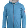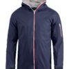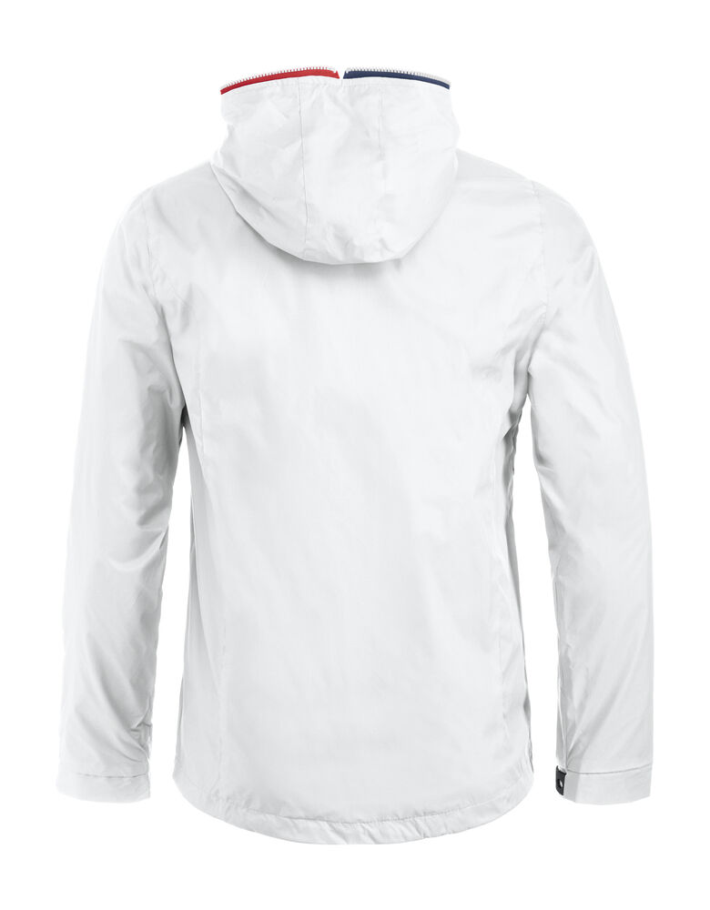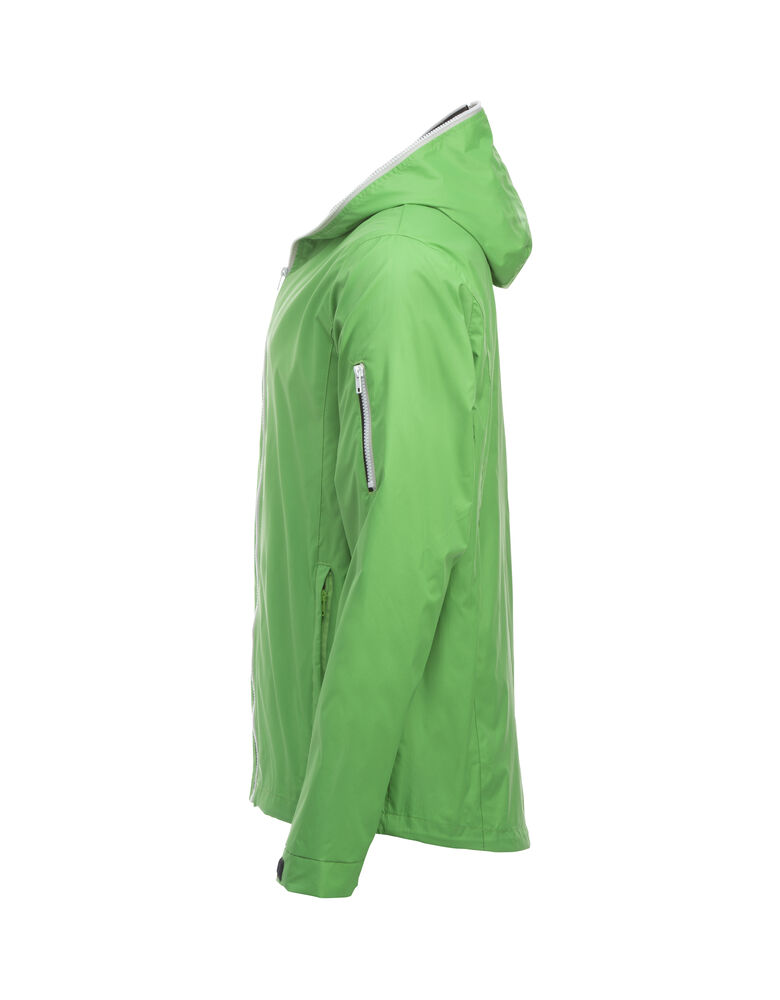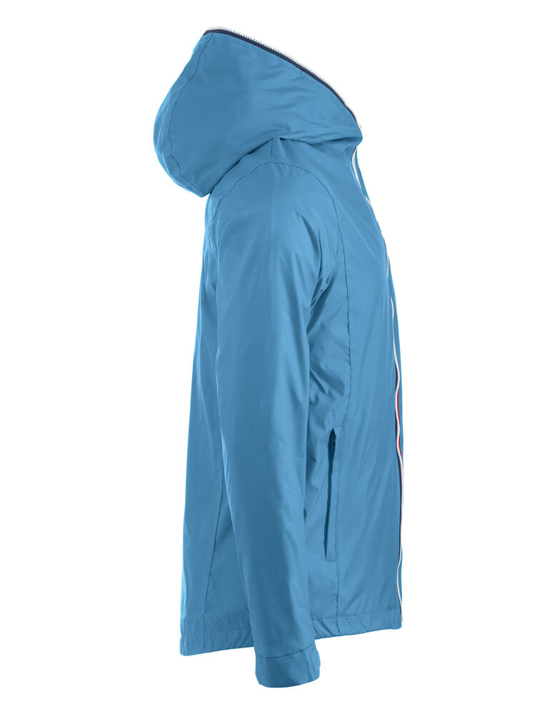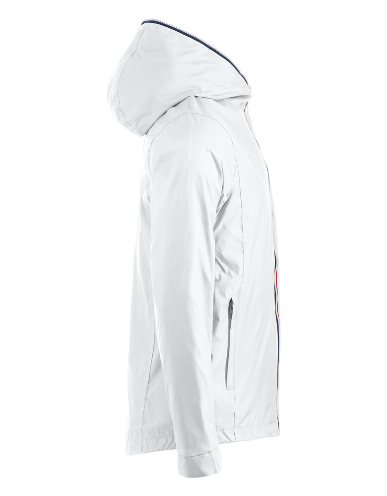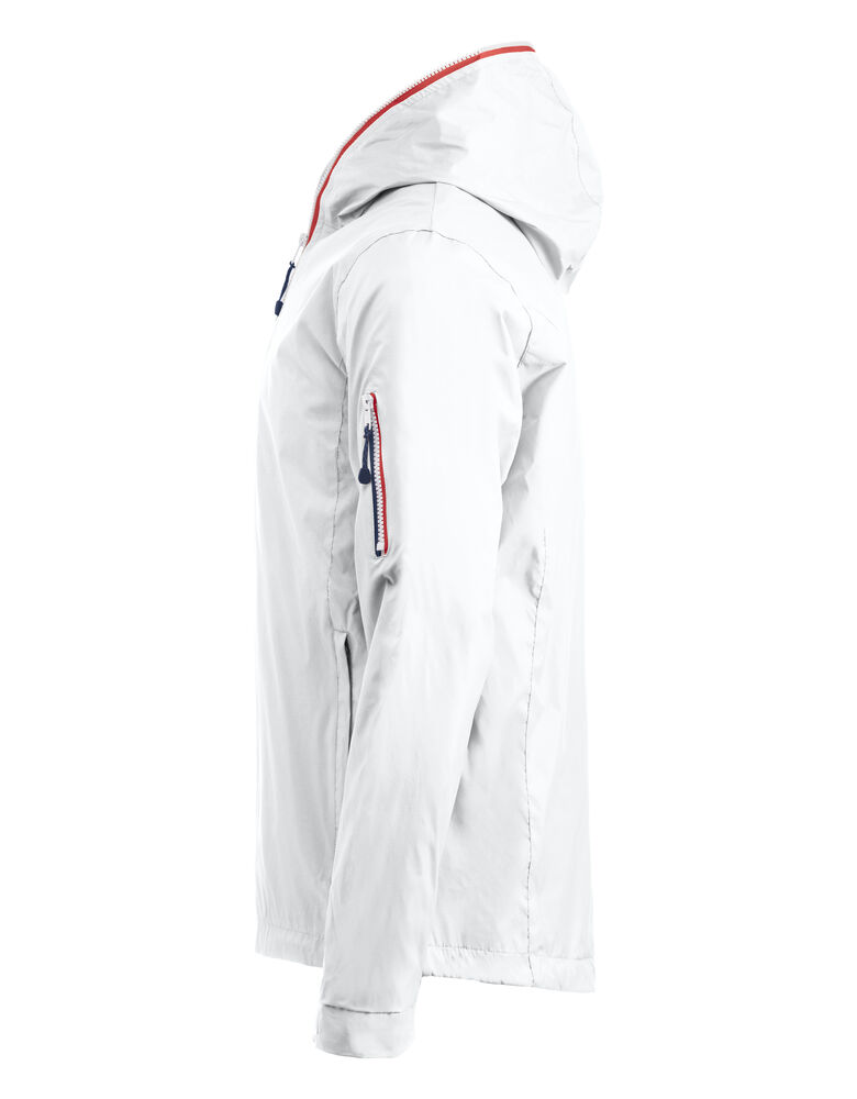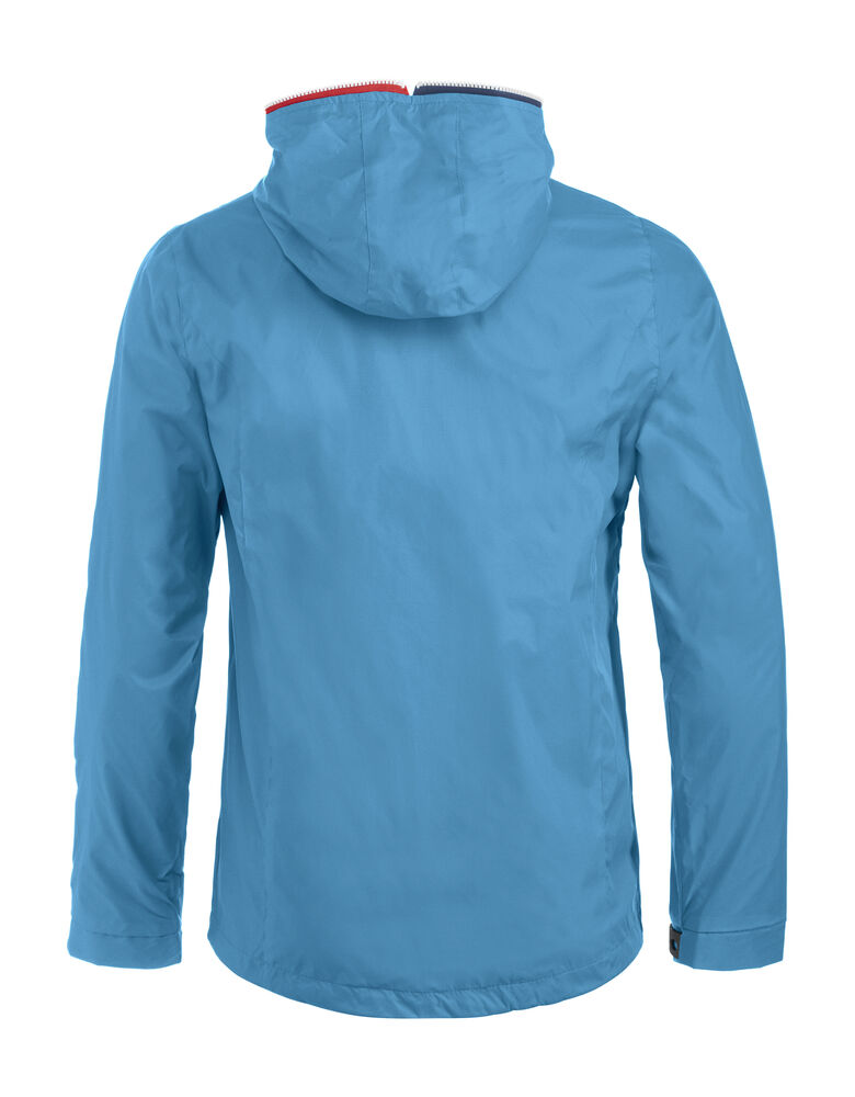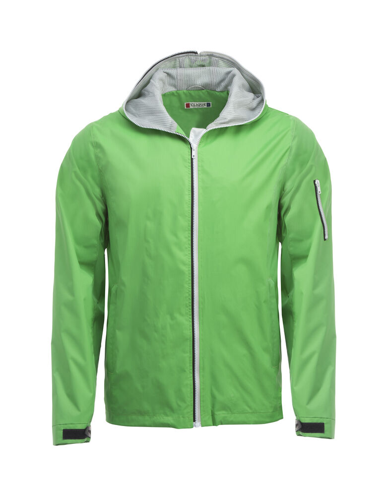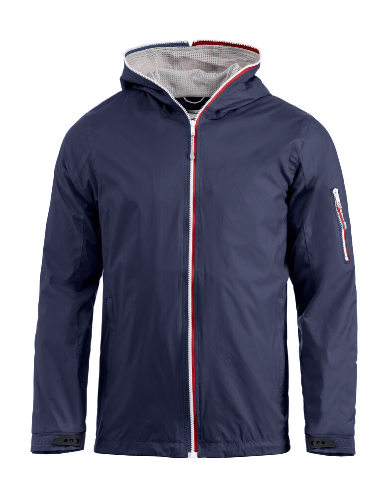 Trendy ripstopjakke med meshfôr og trefarget glidelås i front og på ermlommen. Fast hette, to sidelommer og en brystlomme.