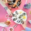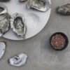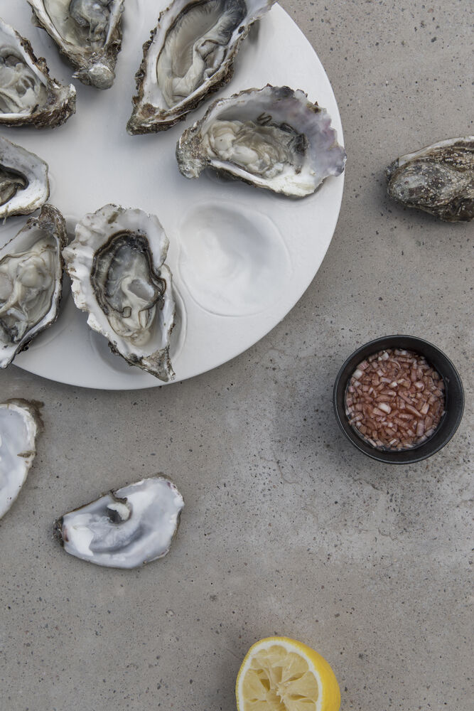 Under overflaten skjuler det seg en verden av uforutsigbare former og vakre materialer. Vi spiser av skjell, tar imot grove overflater og bytter ut glitter med saltsprut. Havet flytter inn når vi pynter og dekker på, rett og slett fordi vi ikke kan motstå lekenheten. Serveringsfatet Oyster er et resultat av når havets dyp gjør avtrykk i vår skapelse.