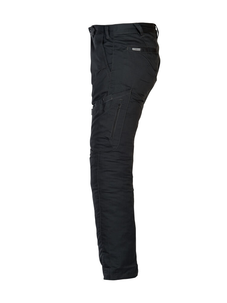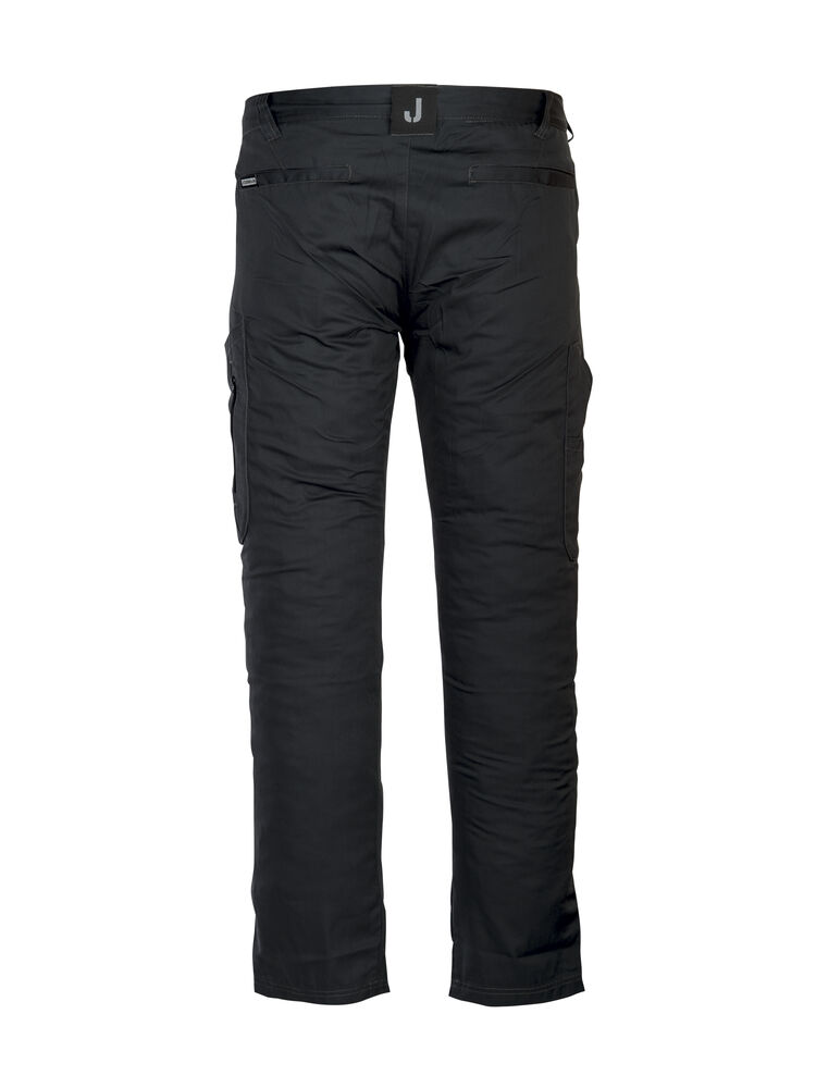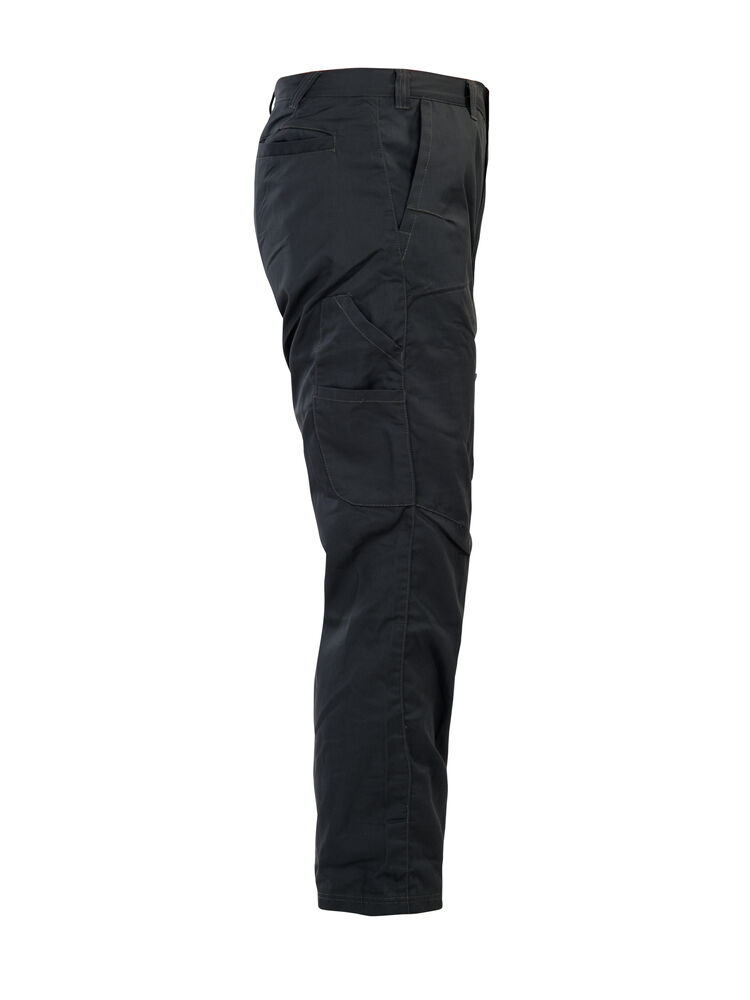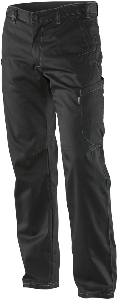 Lettstelt bukse som passer til serviceyrker som rengjørings-, butikk- og lagerarbeid. Innsydde front- og baklommer. Venstre ben med dobbellomme, én med glidelås og én med åpent rom og borrelås. Høyre ben med tommestokklomme. Forbøyde knær.