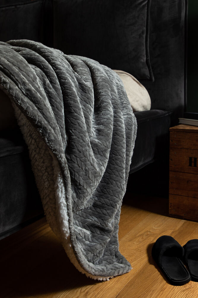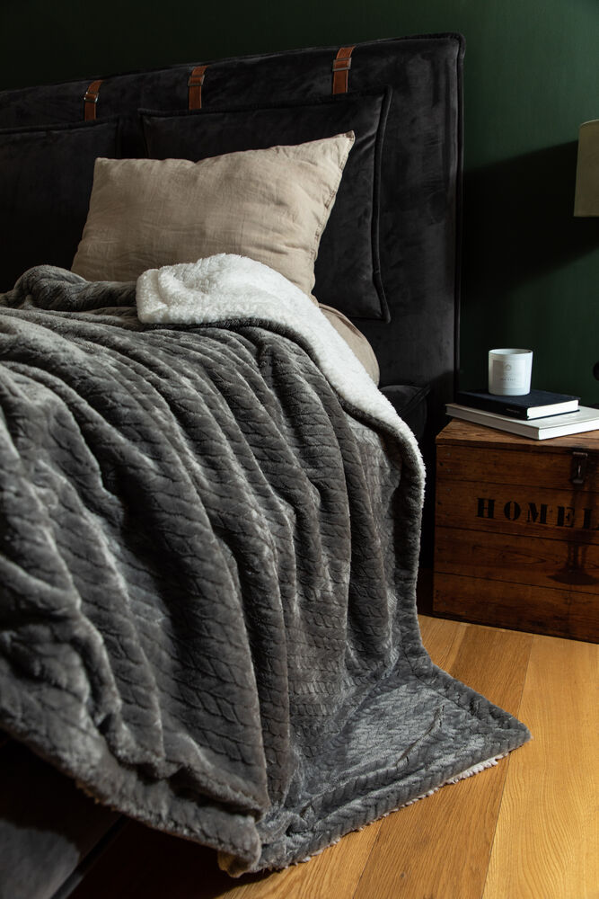 Opplev mykheten til dette flettede sherpa-pleddet med ensfarget overside og hvit underside. Med sitt koselige og varme materiale er den perfekt for kalde kvelder foran TV-en, eller som et ekstra mykt sengeteppe.