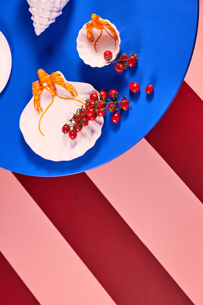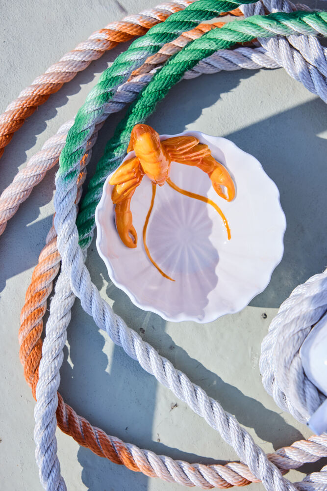 Lobsti er en serveringsskål inspirert av havet, men på et mer dyrisk nivå. Her har krepsen fått liv, og tilfører humor og lekenhet til borddekkingen. Et "must have" på middagsbordet, men også som et iøyefallende element som skaper dynamikk og blir middagens store samtaleemne. Skålen er hvit, mens krepsen lyser opp i en deilig orange-farge. Laget av dolomitt.