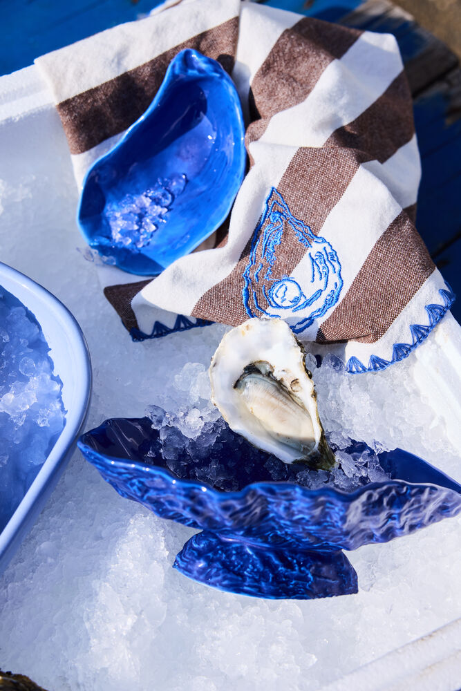 Under overflaten skjuler det seg en verden av uforutsigbare former og vakre materialer. Vi spiser ut av snack-skjell, ønsker grove overflater velkommen, og bytter glitter mot sjøsprøyt. Havet flytter inn når vi pynter og dekker bordet, rett og slett fordi vi ikke kan motstå lekenheten. Skål Oyster er et resultat av at havets dybde gjør inntrykk i vår skapelse. Med det lekne utseende i blått, beige og grått i en blank finish, skaper den noe helt spesielt. Finnes også i hvit matt finish. Bland og match farger, bruk til smykker, tapas eller flaksalt. Skålen tåler oppvaskmaskin, noe som forenkler rengjøring og vedlikehold. Ikke egnet for mikrobølgeovn eller ovn.