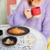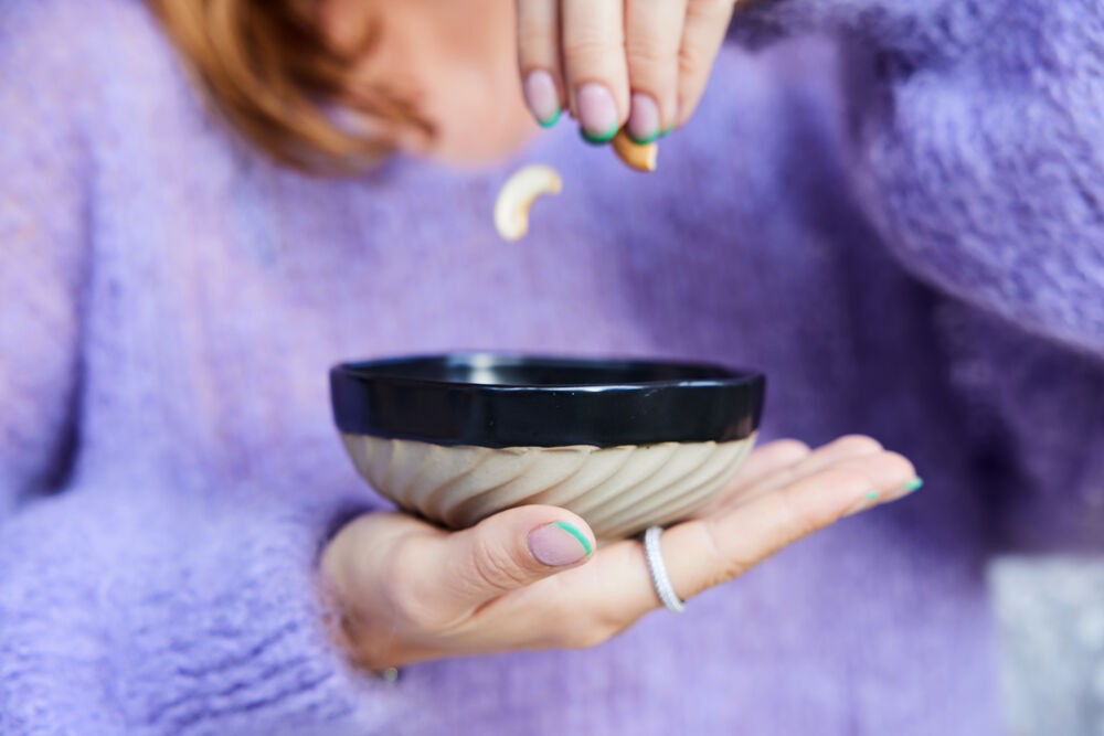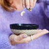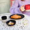 Swirl er resultatet når keramikk blir håndverk på en moderne måte. Uregelmessig, rund, snirklete, organisk, overdimensjonert og med skrå, ujevnet striper. Den matte, svartglaserte overflaten møter det ufargede rå – og kontrasten føles genuin. Skålen Swirl er tykk, men ikke tung. Den perfekte bollen til frokost, lunsj og middag.