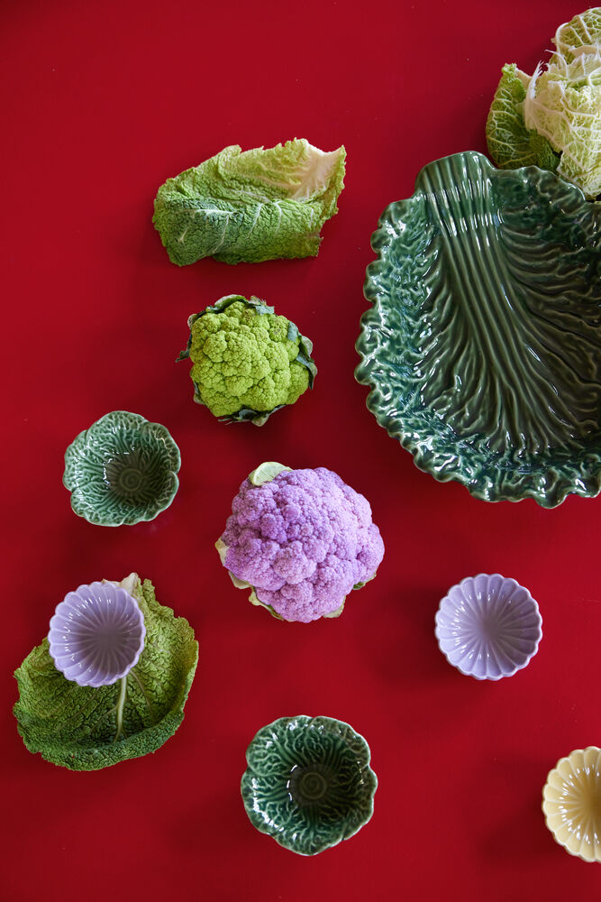 Skålen Veggi er en skål formet som kålblader. En garantert glad og anvendelig detalj som er lett å like. Grønnfargen kan matches med alt, og gir hverdagsporselenet et løft, uansett om det er én eller flere skåler. Skålen Veggi ser flott ut alene eller sammen med flere andre.